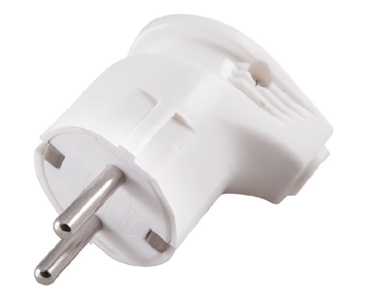 Разборная угловая вилка АБК-СИЛА с заземляющим контактом 16А 220В белая 2901007