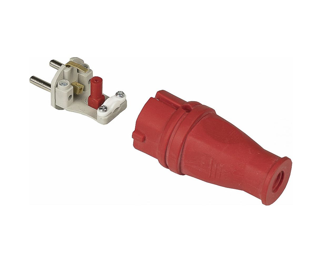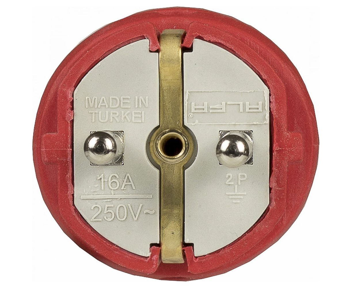 Электрическая пряма вилка Alfa каучуковая, с заземлением 16А, 250В, Красная 20200002