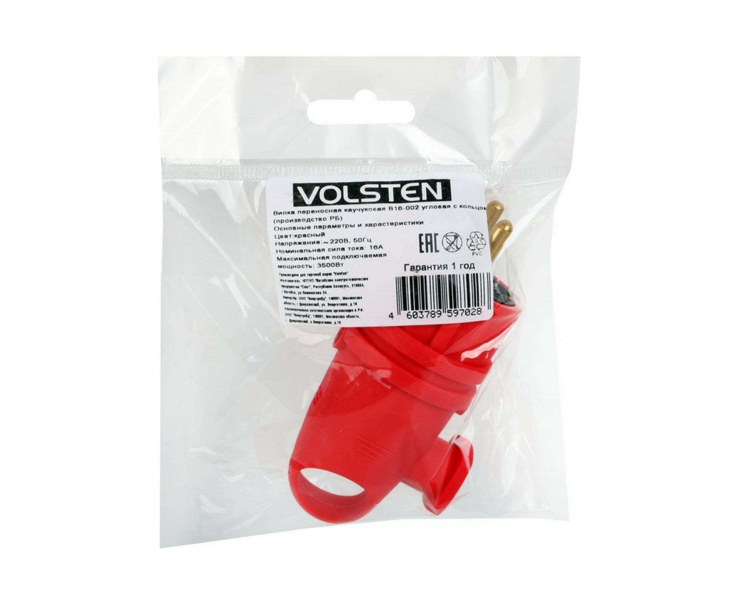 Каучуковая разборная угловая евровилка Volsten Sb2-PZ Red, красная с заземлением модель В16-002 14431