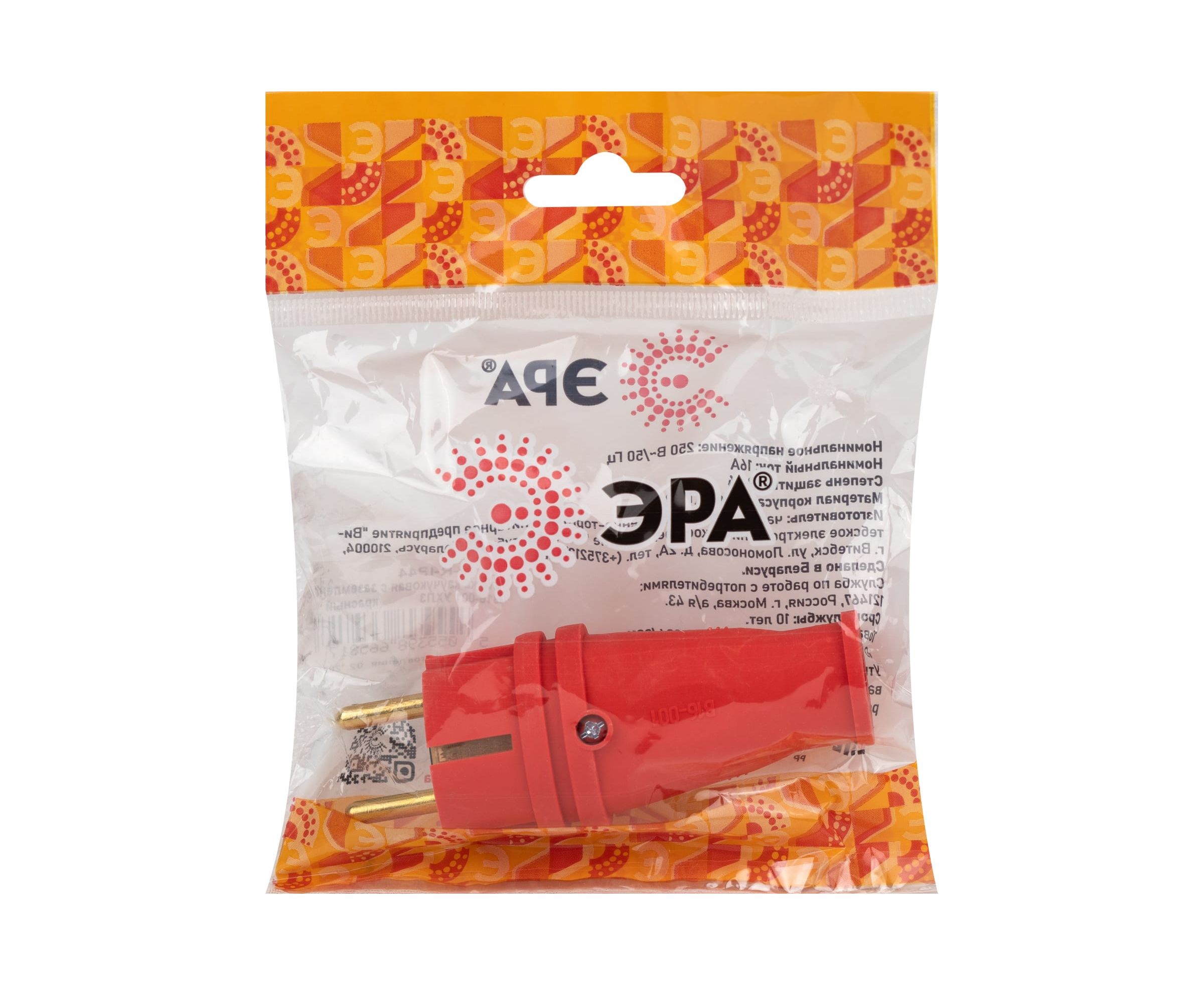 Каучуковая вилка ЭРА с заземлением VX10-R-IP44 16А IP44 прямая красная, Б0055415