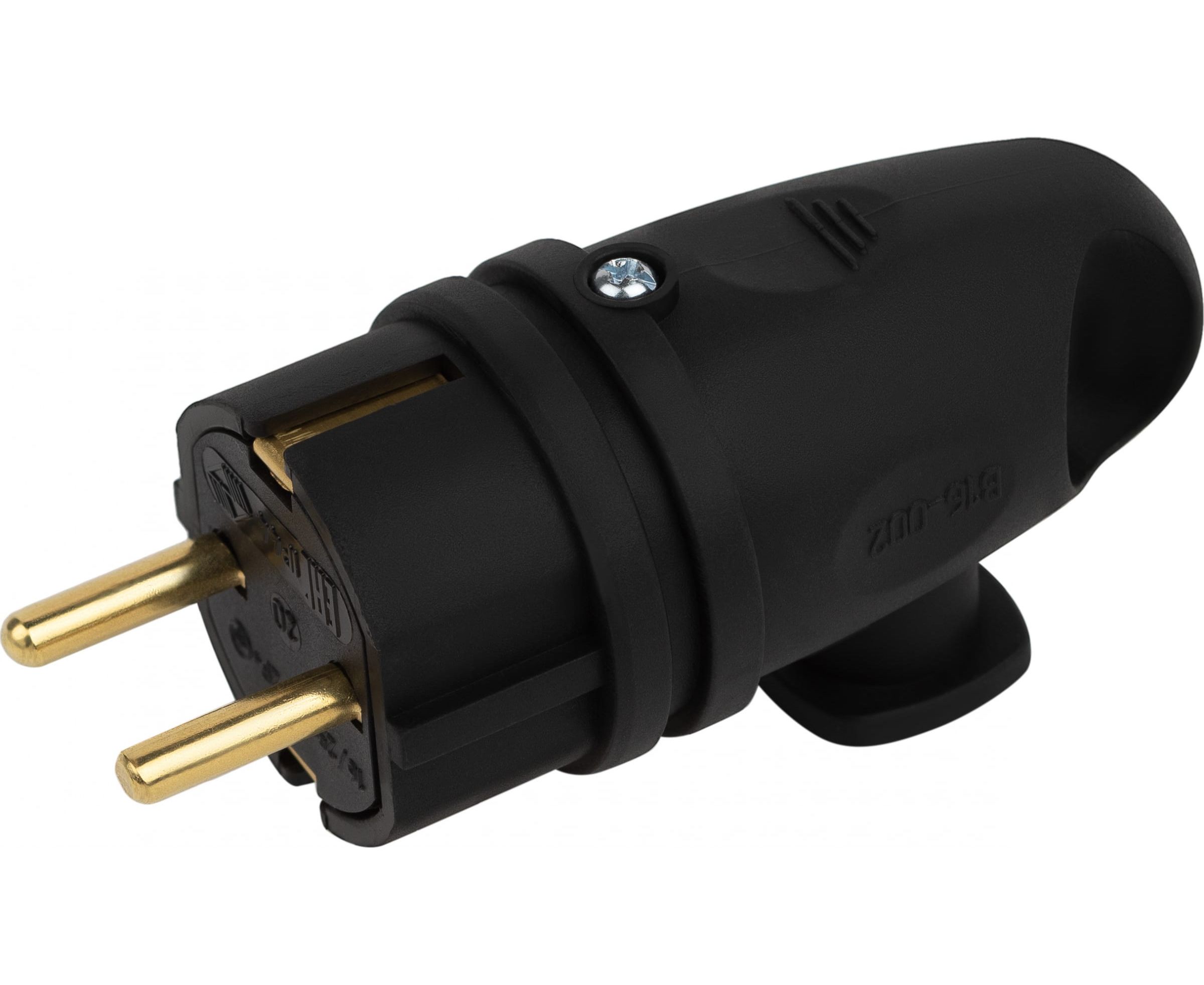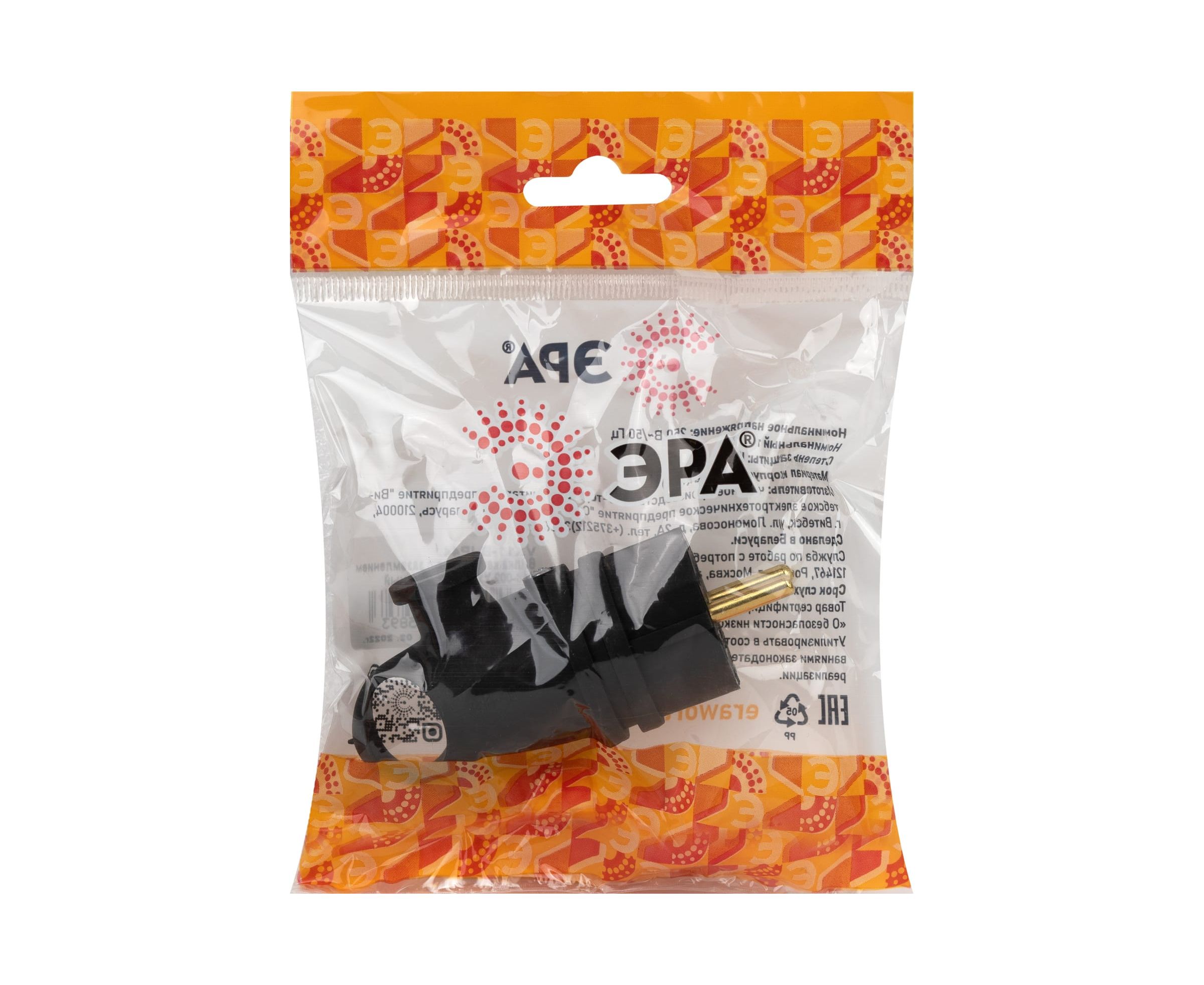 Каучуковая вилка ЭРА с заземлением VX11-B-IP44 16А IP44 с кольцом, угловая черная, Б0055416