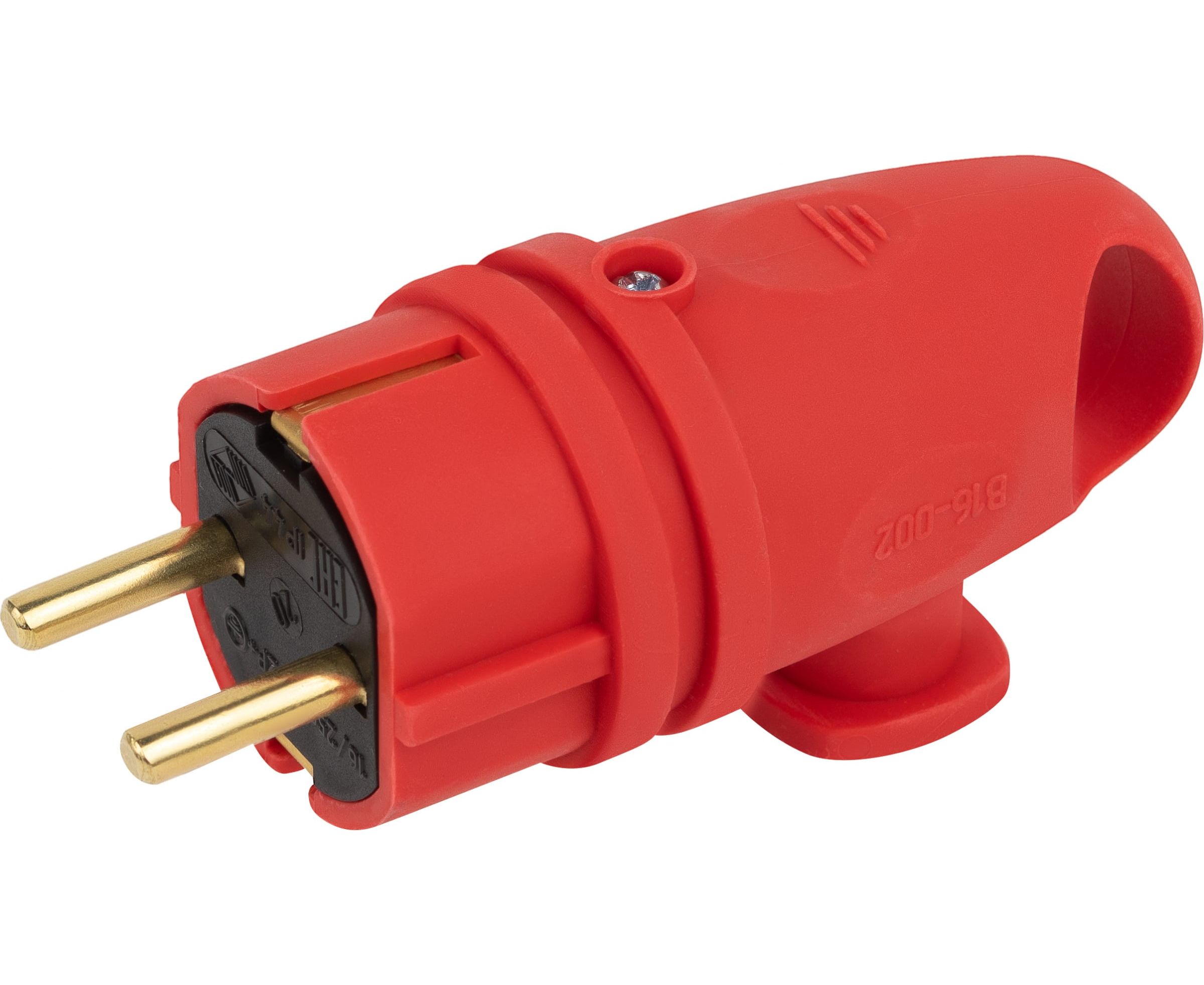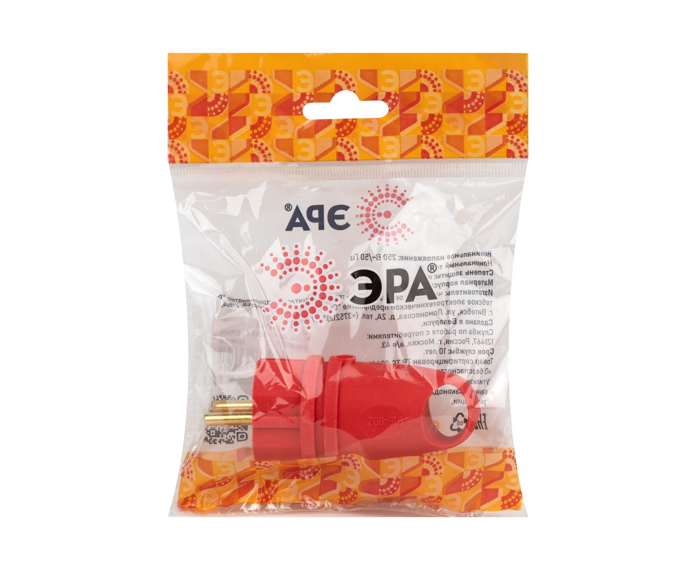 Каучуковая вилка ЭРА с заземлением VX11-R-IP44 16А IP44 с кольцом, угловая красная, Б0055417