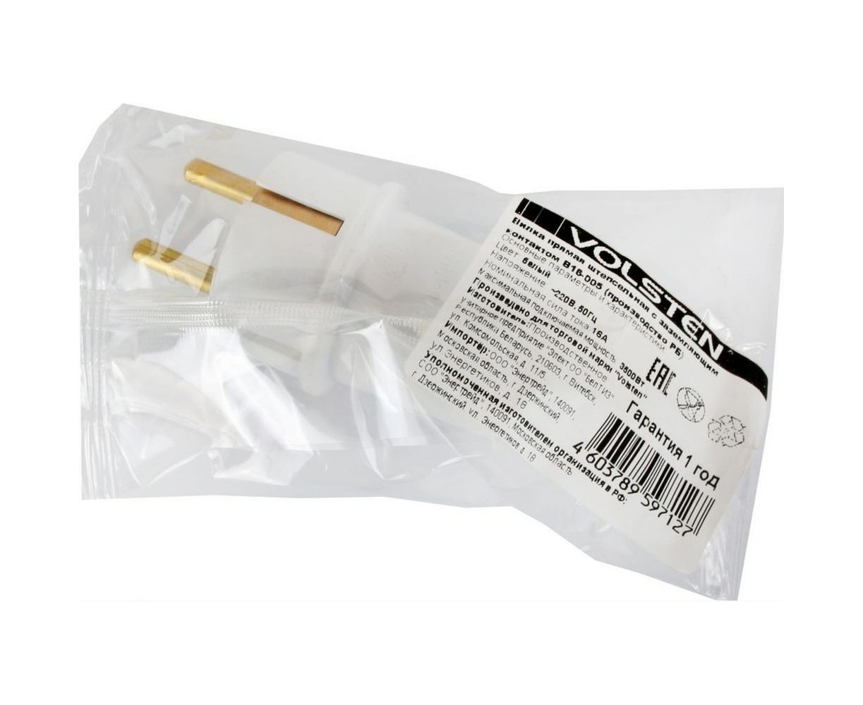 Прямая разборная вилка Volsten Sb2-PZ2 16А белая евро с заземлением модель В 16-005 14441