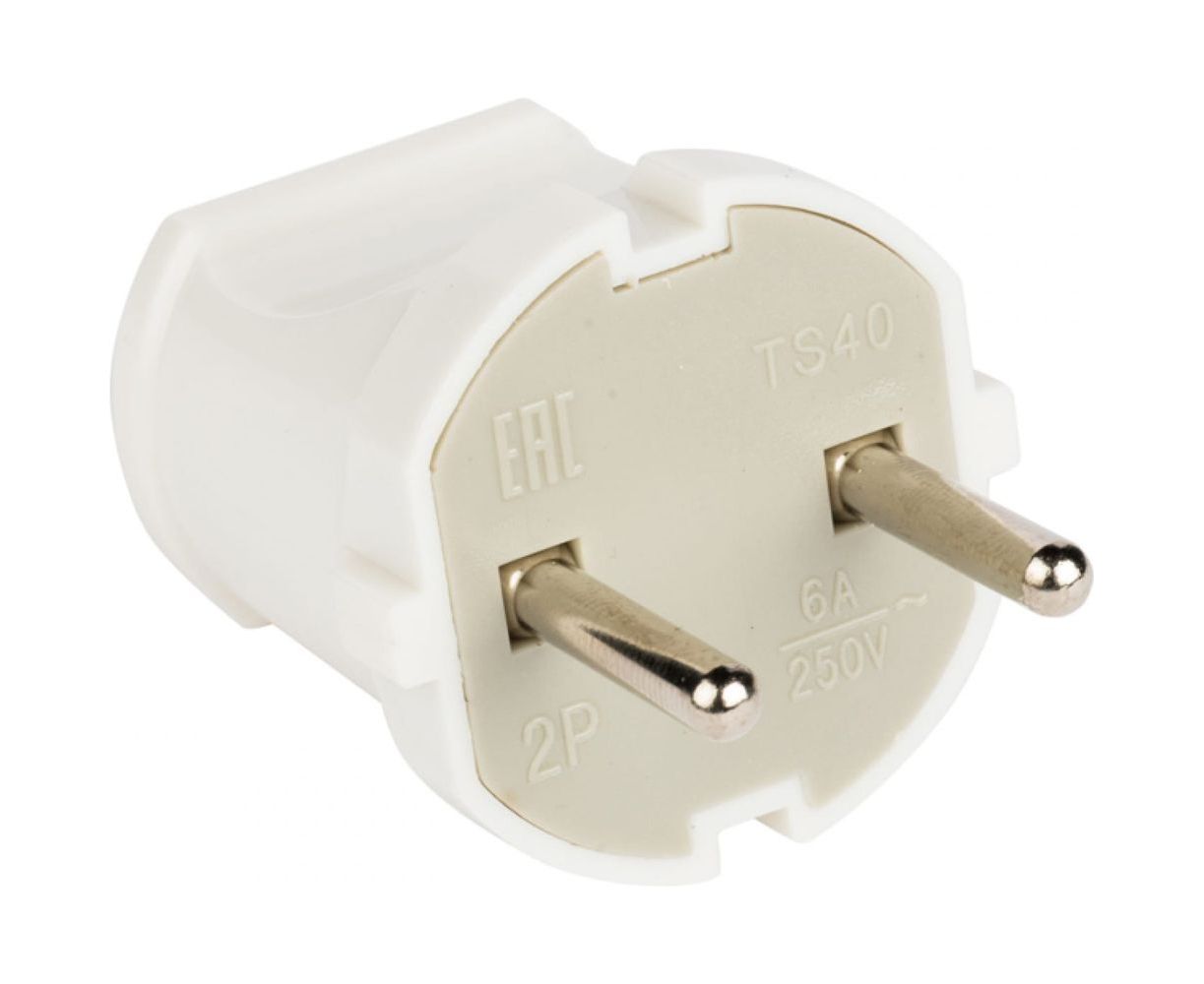Прямая вилка без заземления EKF, белая 6А 250В AVP6-10