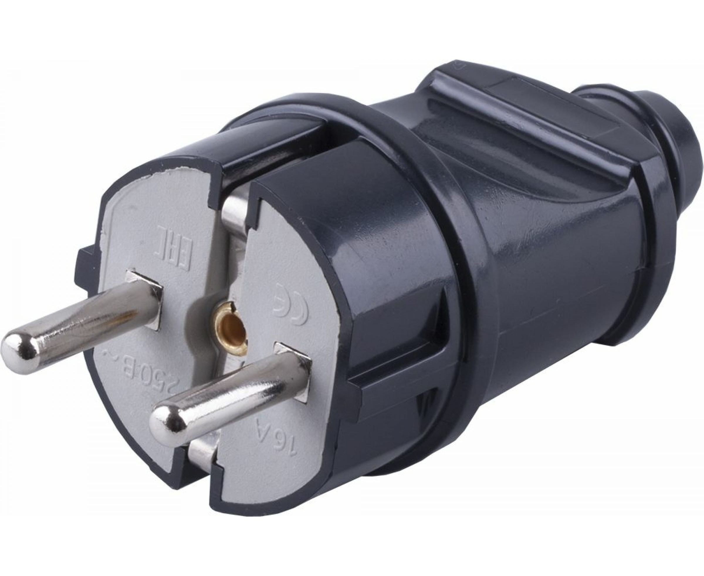 Прямая вилка STEKKER с заземляющим контактом, пластик 250В, 16A, IP20, черная, PPG16-42-201 32852
