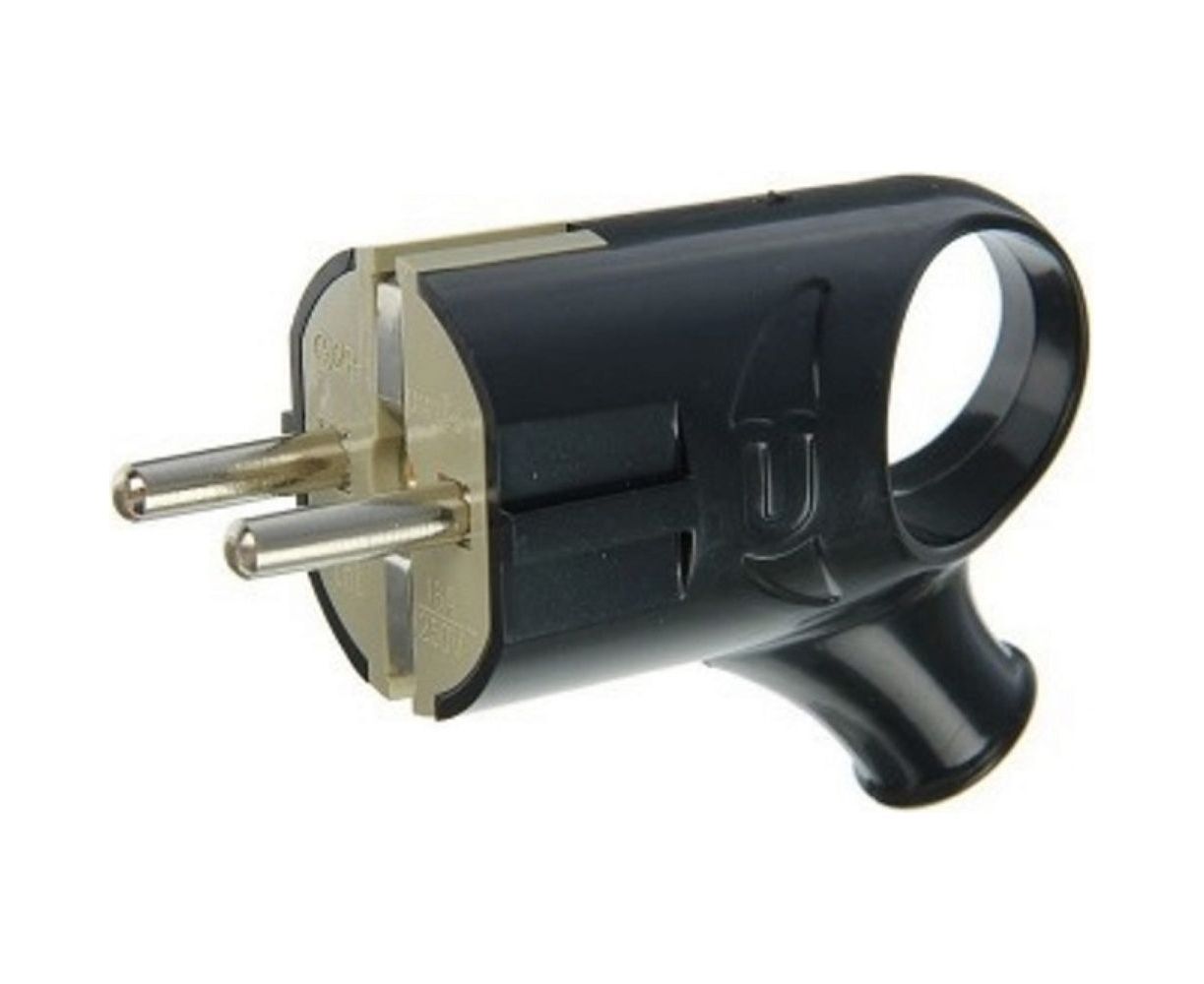 Разборная угловая вилка АБК-СИЛА с кольцом, с заземляющим контактом 16А 220В черная 2901006