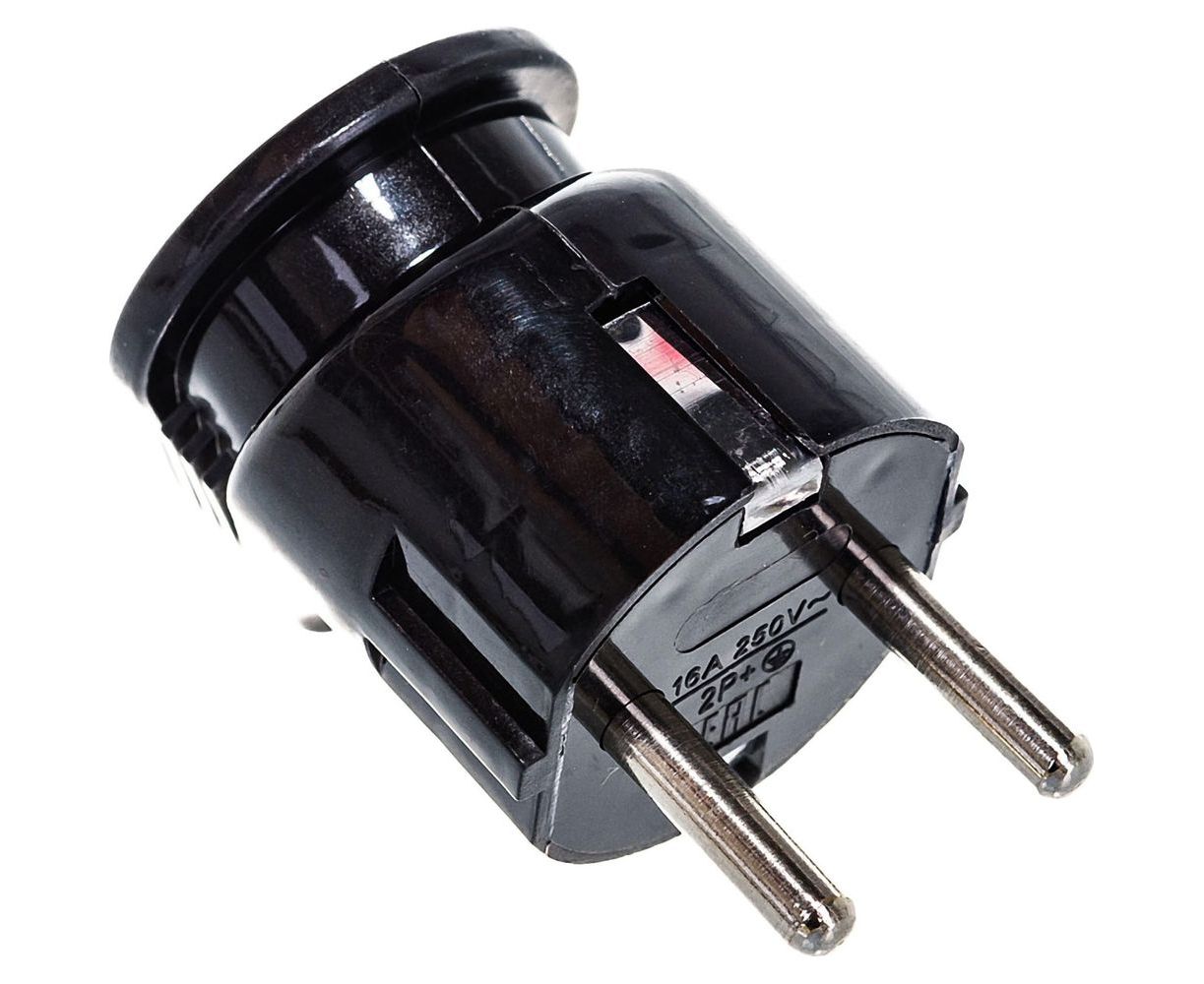 Разборная угловая вилка АБК-СИЛА с заземляющим контактом 16А 220В чёрная 2901008