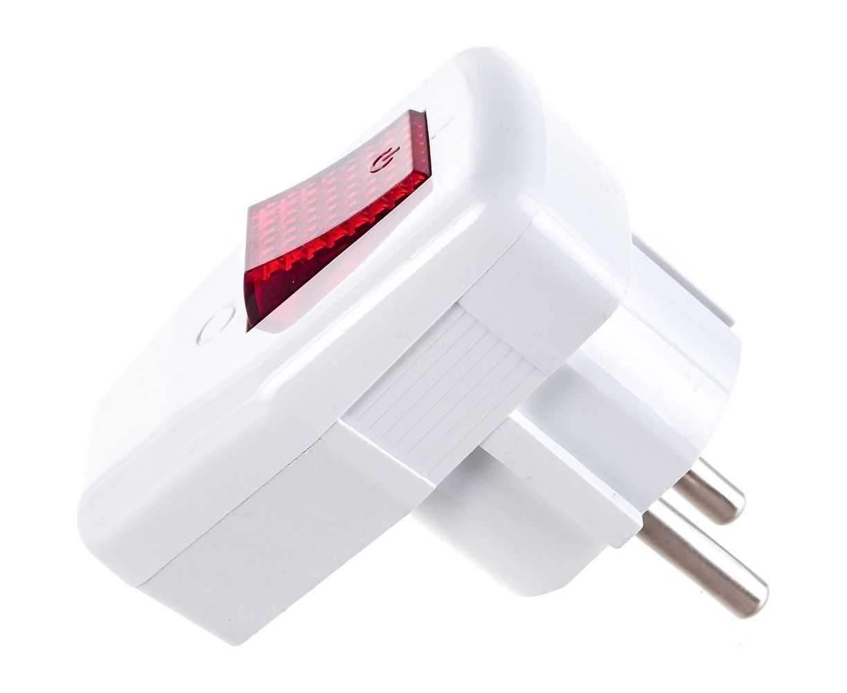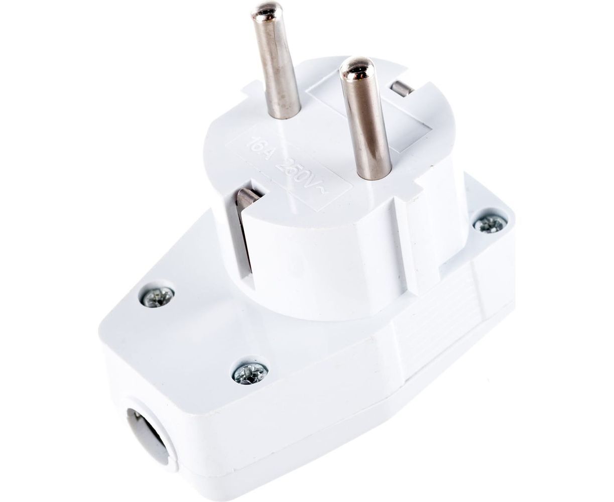 Разборная угловая вилка АБК-СИЛА с заземляющим контактом 16А 220В с выключателем белая 2901009