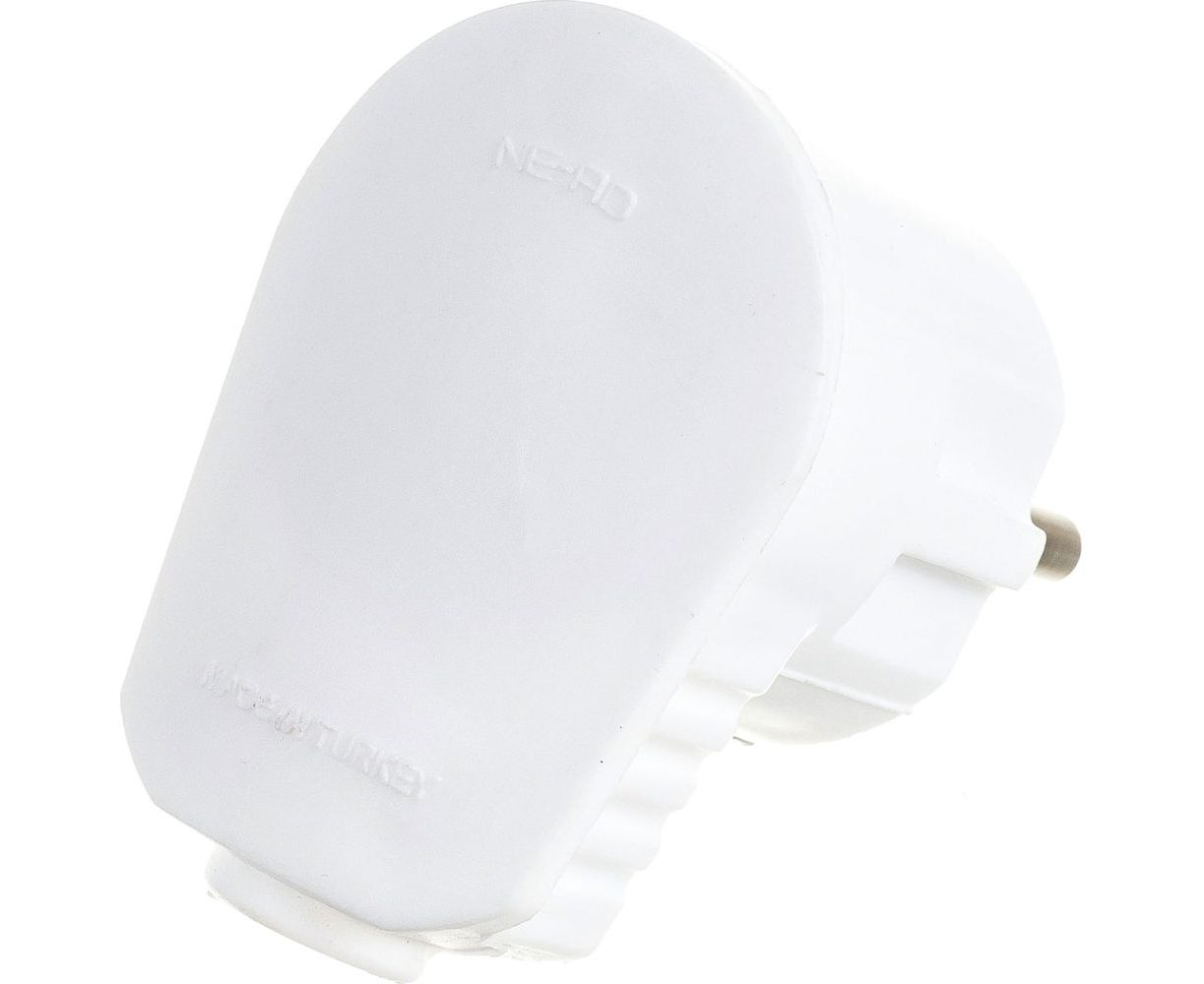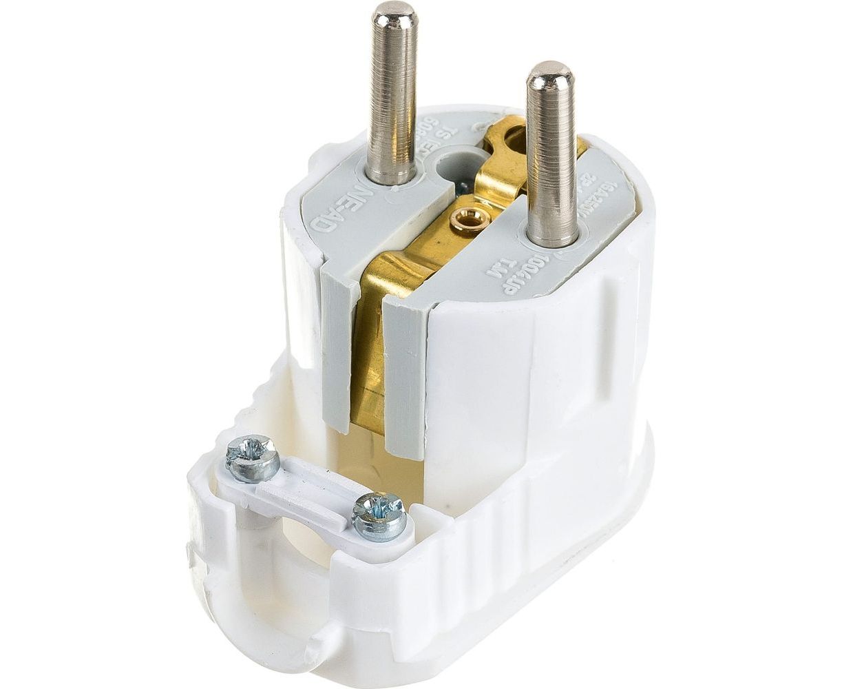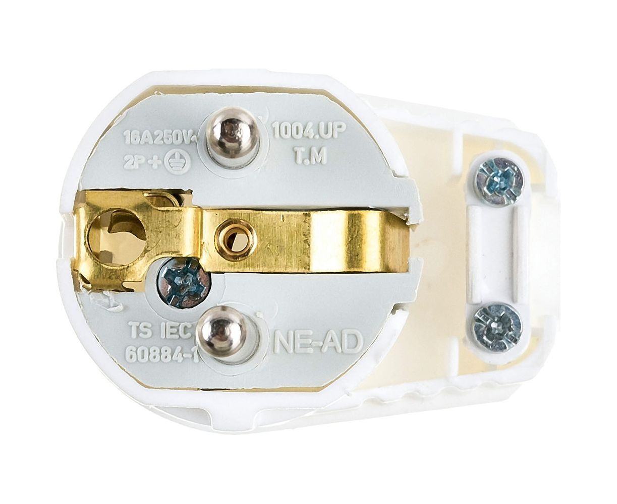 Штепсельная угловая вилка NE-AD с заземлением, UPS, 16А, 250В, Белый 1004 изготовлена из пластика, стойкого к механическим повреждениям. Оснащена прижимными планками для фиксации провода.