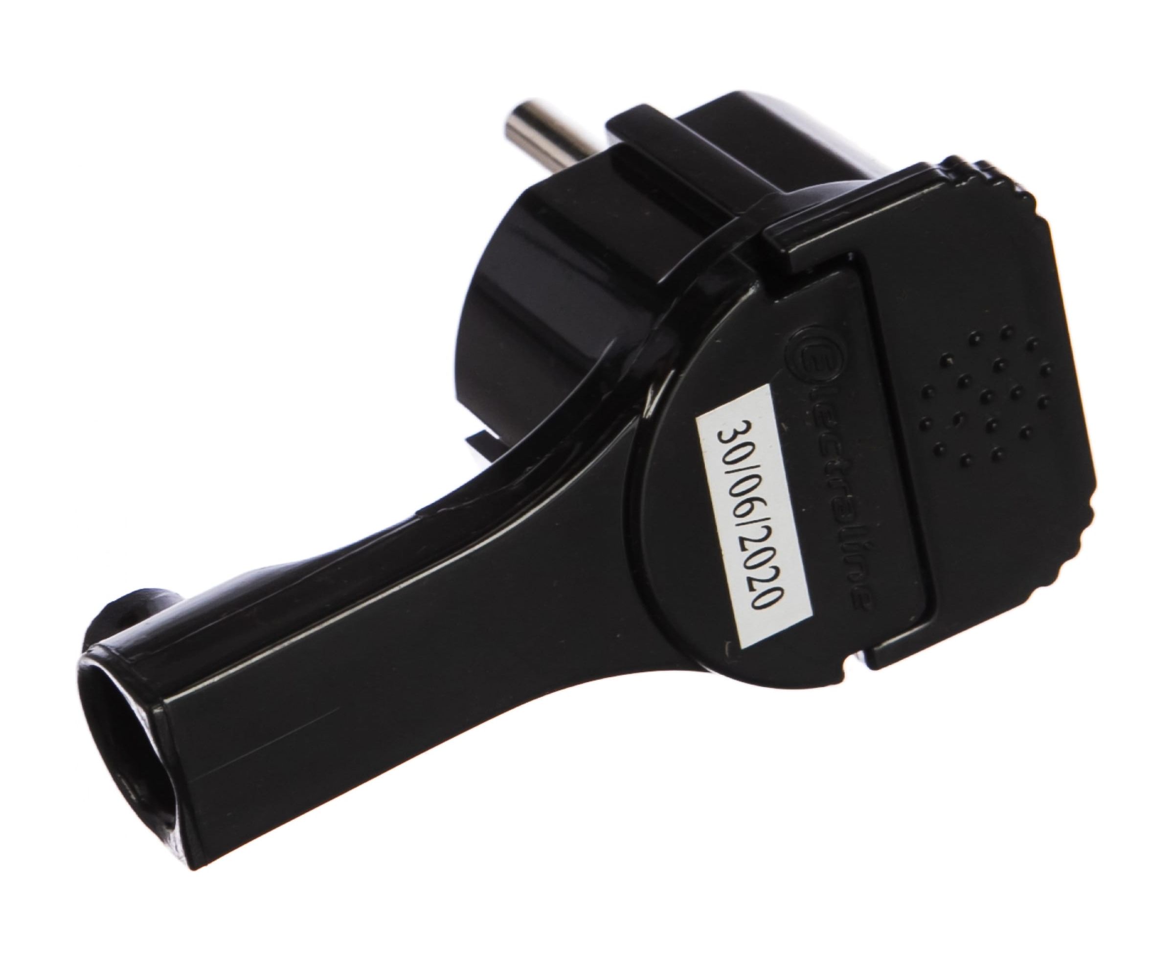Угловая плоская вилка за шкаф с/з, 16А, черная, FLAT PLUG Electraline 55045