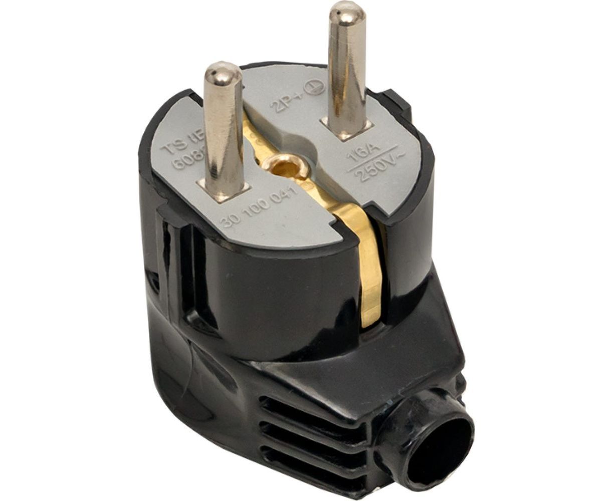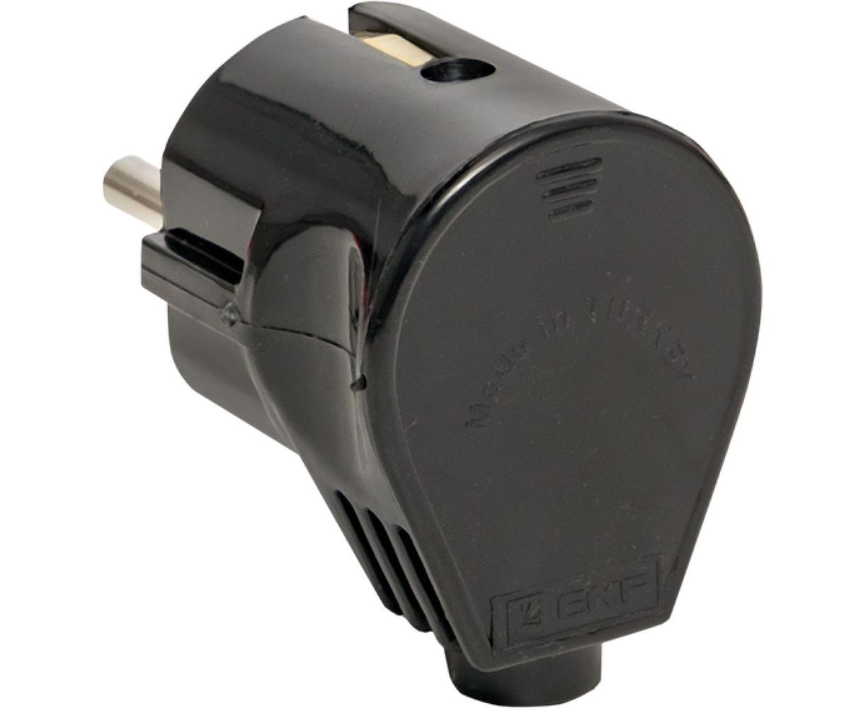 Угловая усиленная вилка EKF с заземлением черная 16А 250В Proxima AVY16-30-r