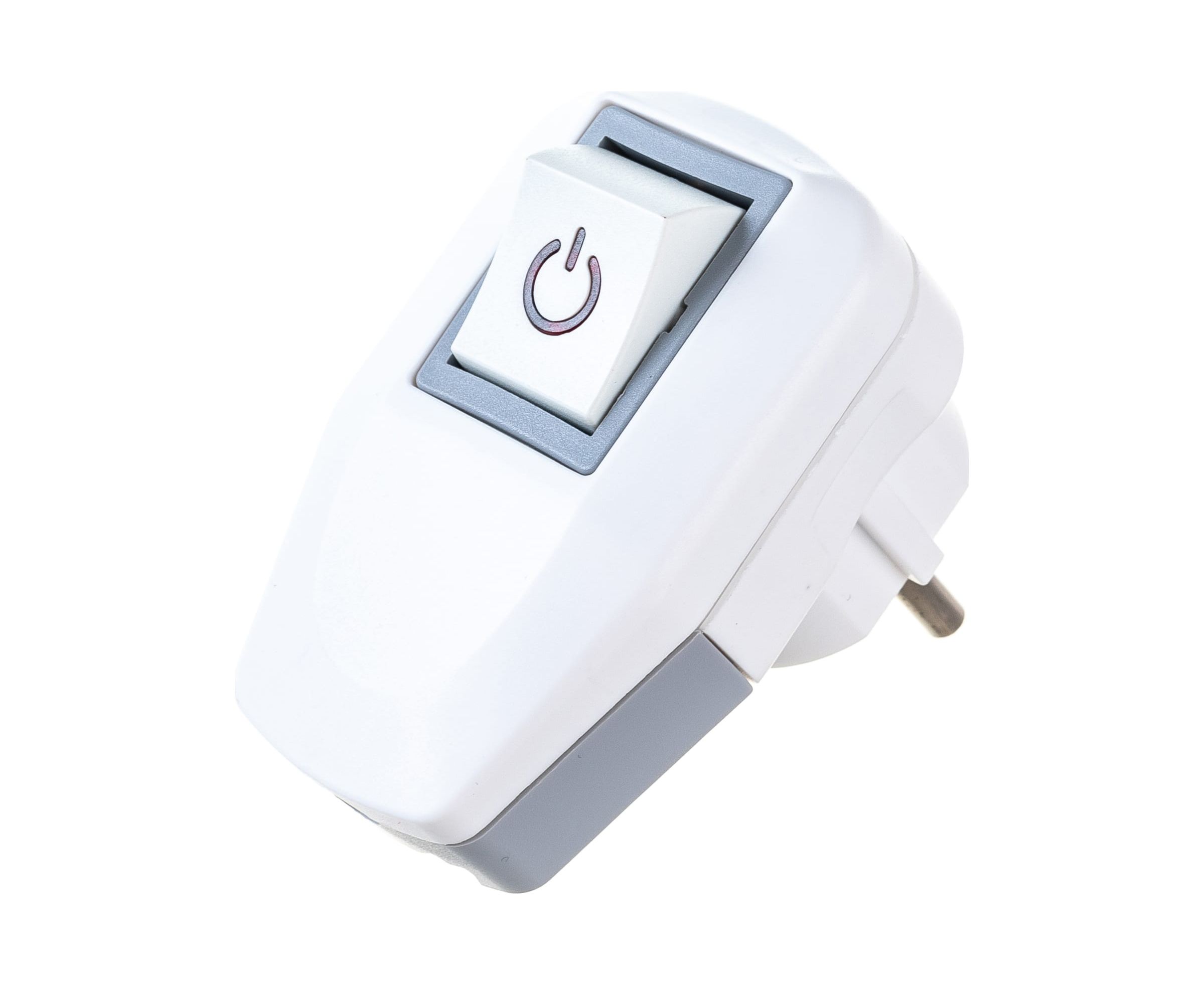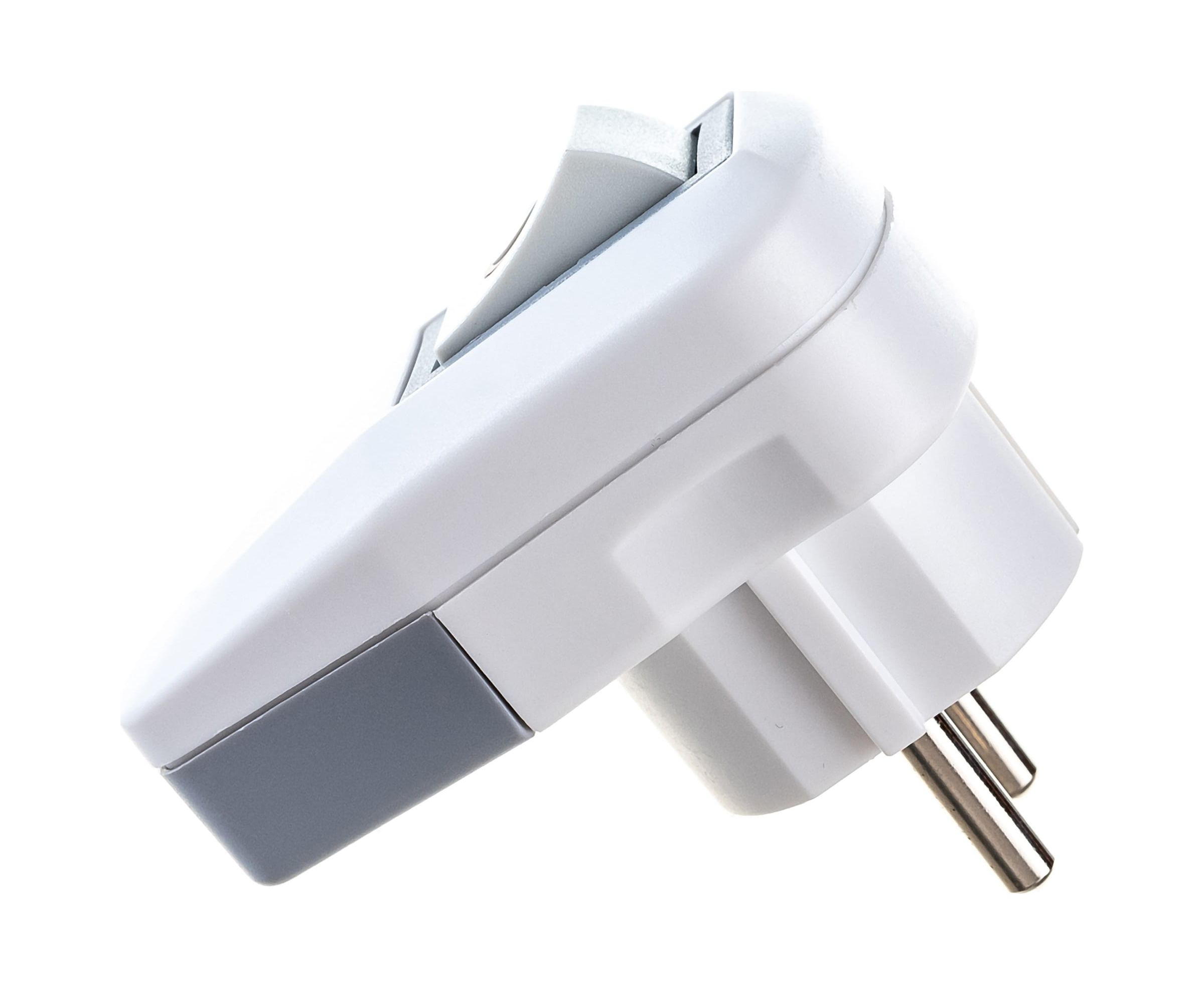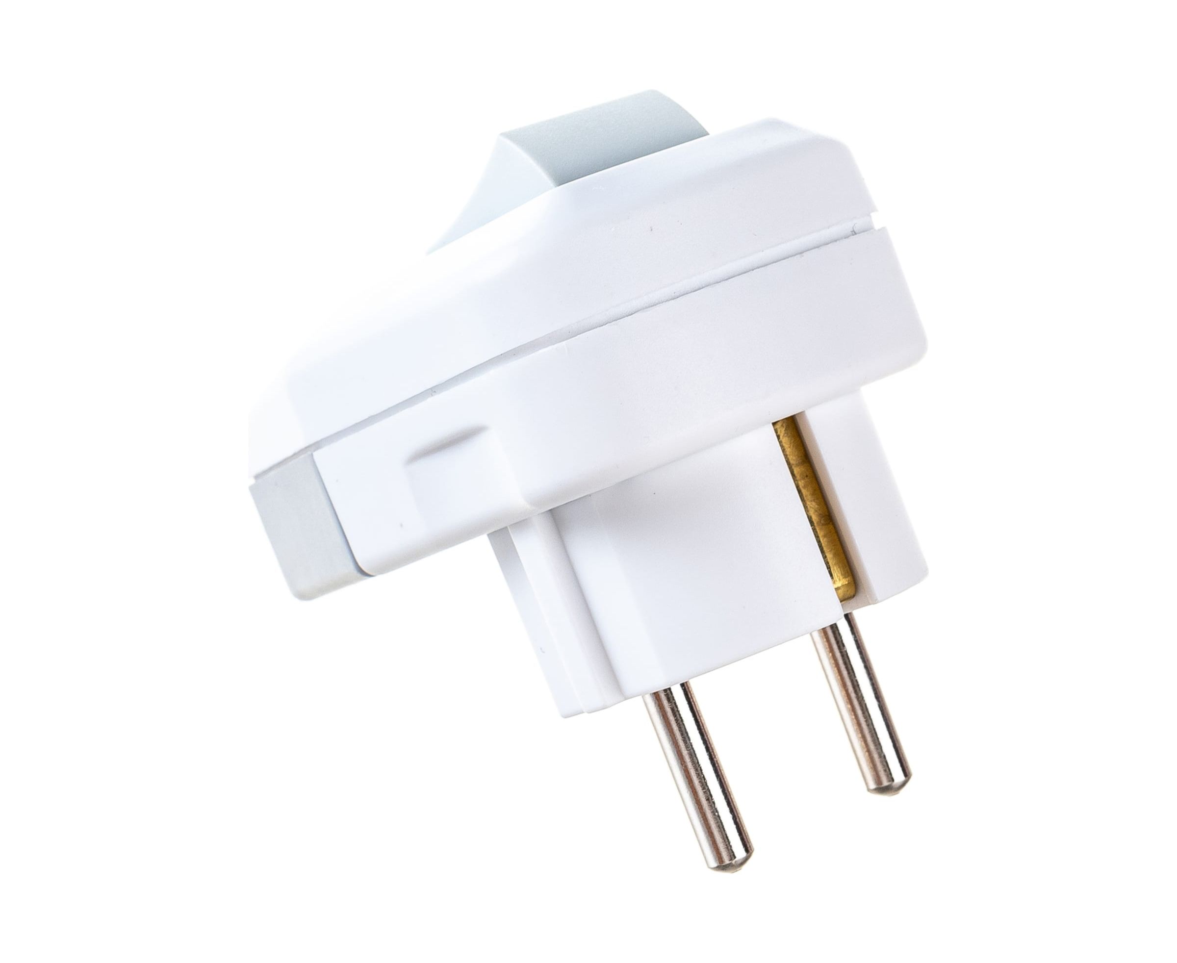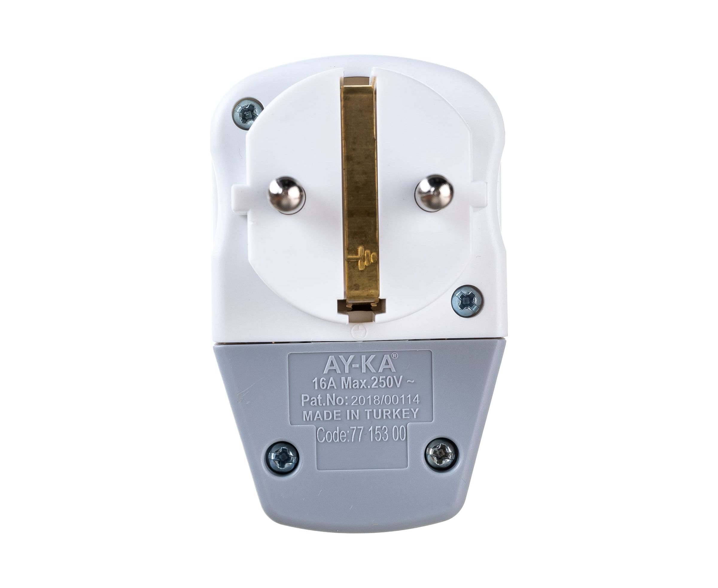 Угловая вилка AY-KA с выключателем 16А 250В с заземлением, белый-серый 7715300