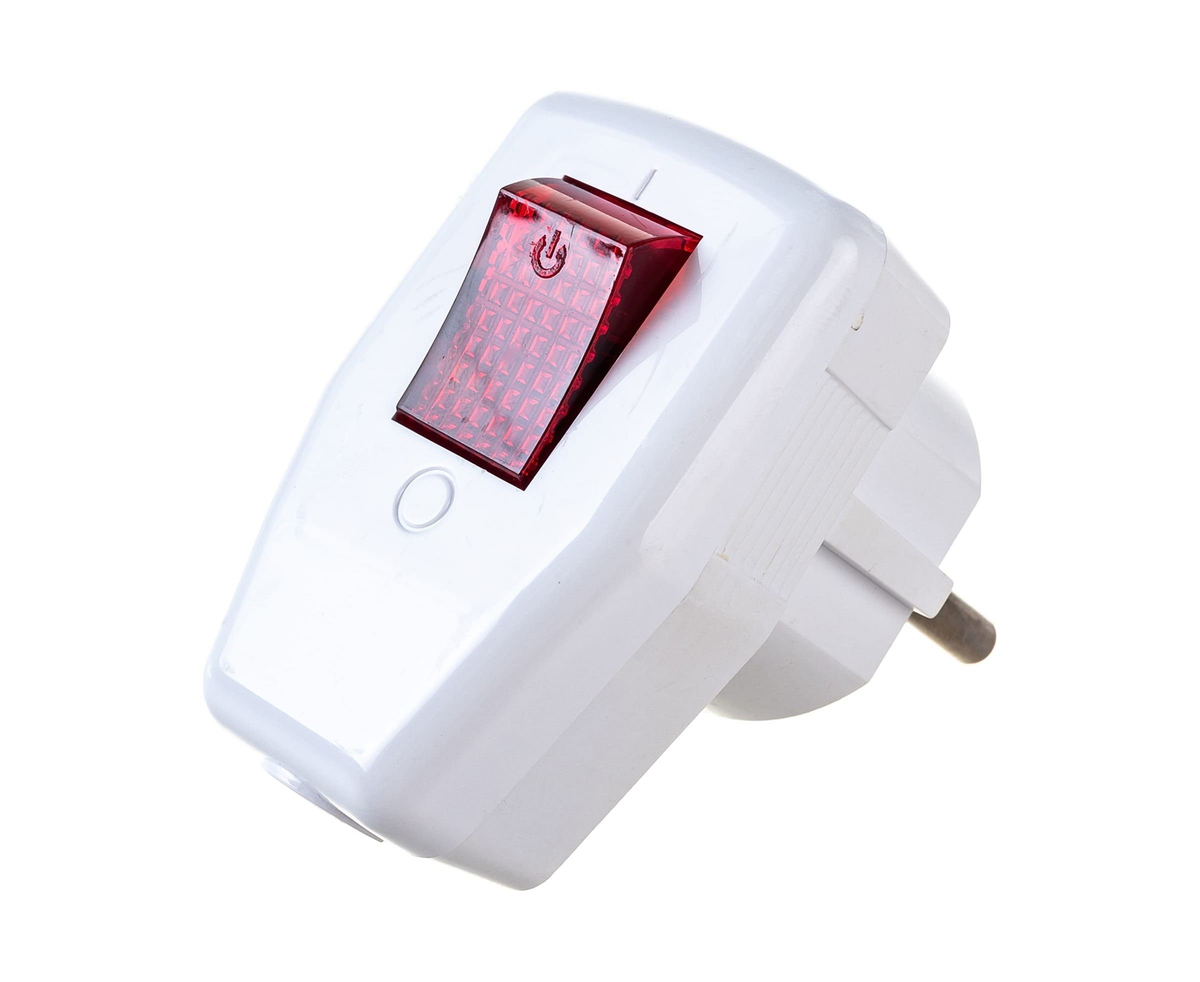 Угловая вилка STEKKER с выключателем, с заземлением, 250В, 16A, IP20, белый 39004 необходима в случае, когда требуется дополнительно обезопасить подключенные к сети приборы, не вынимая вилки из розетки.