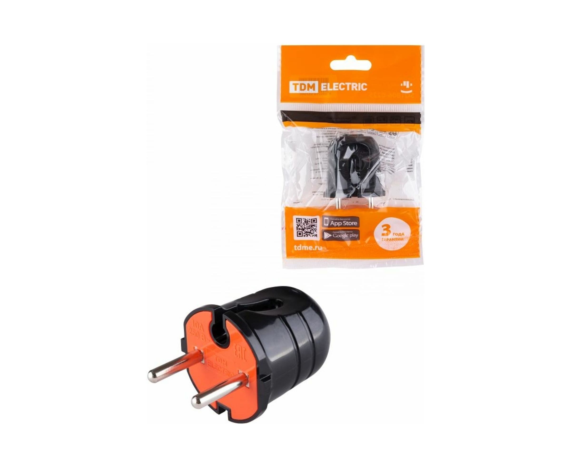 Вилка без заземления TDM черная с красной вставкой, 10А, 250В SQ1806-0210