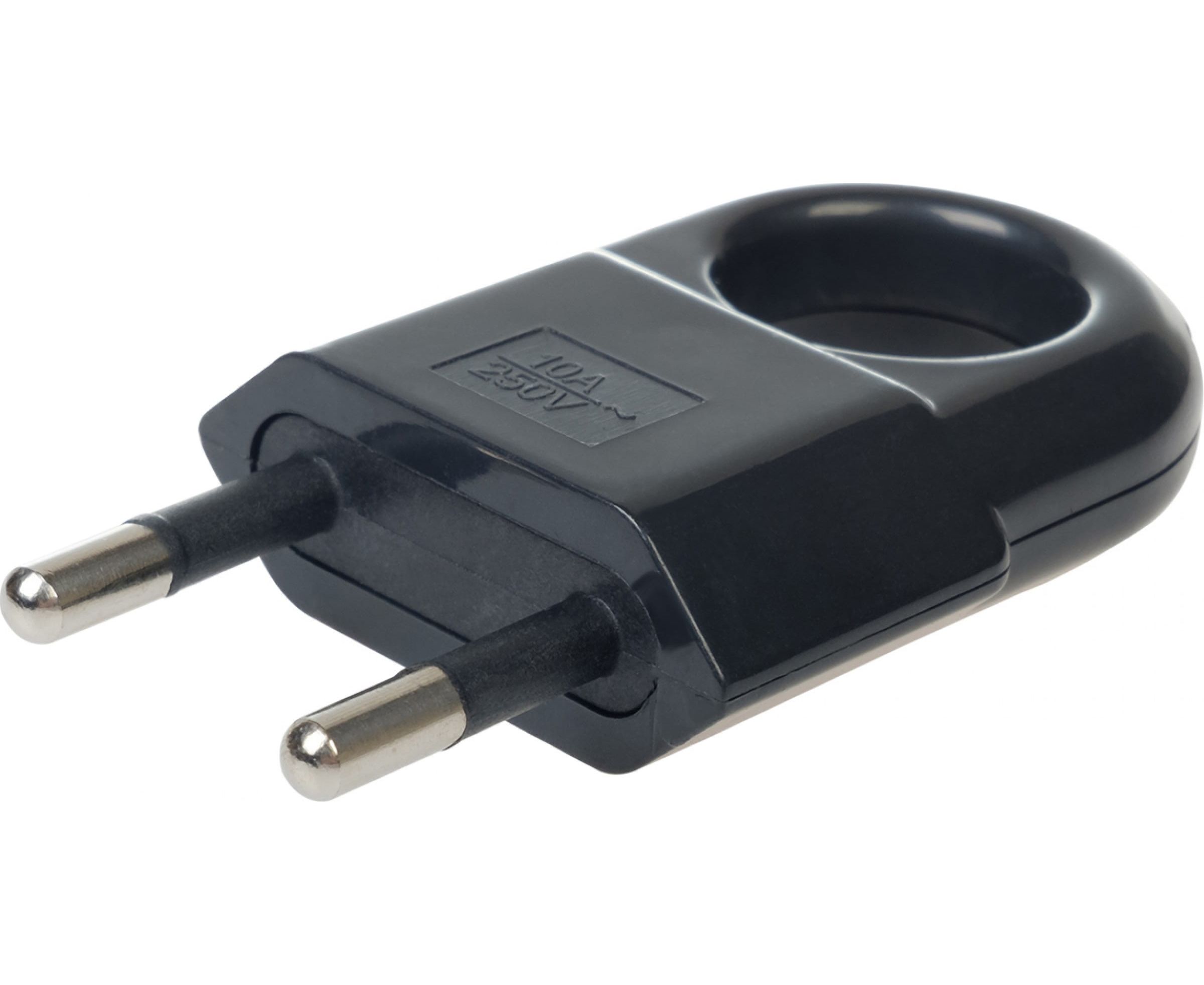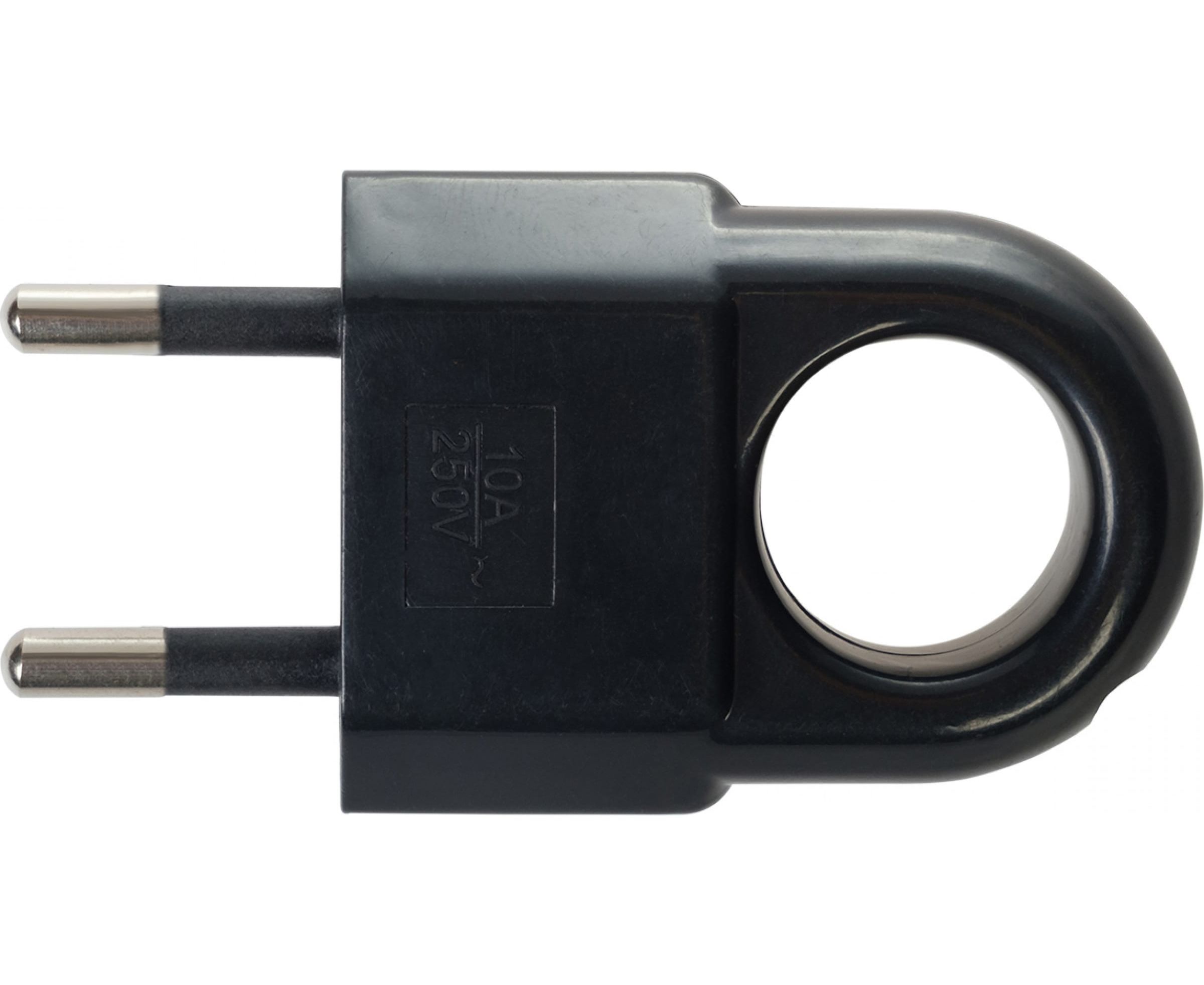 Вилка duwi без заземления с кольцом черная 10А 250В евровилка CEE 7/16 30475 3