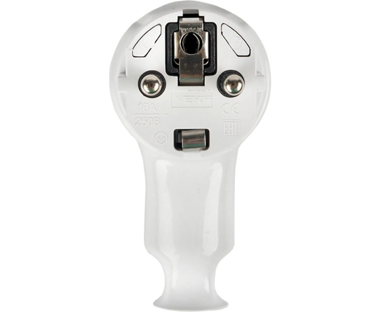 Вилка с кнопкой извлечения EKF с заземлением белая 16А 250В AVP-16-k