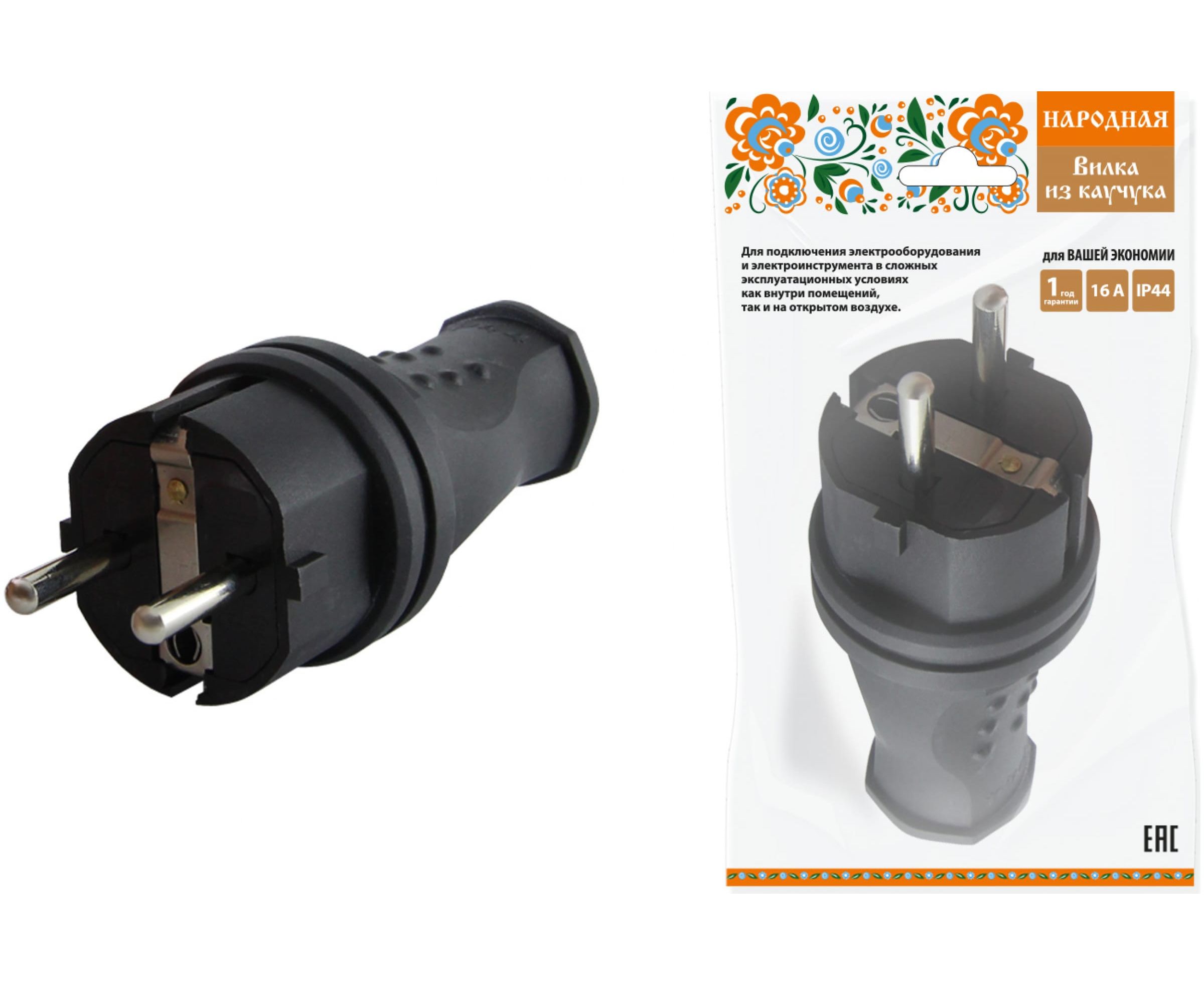Вилка TDM прямая каучук 2Р+РЕ 16А 250В IP44 серии "Народная" SQ0612-0031