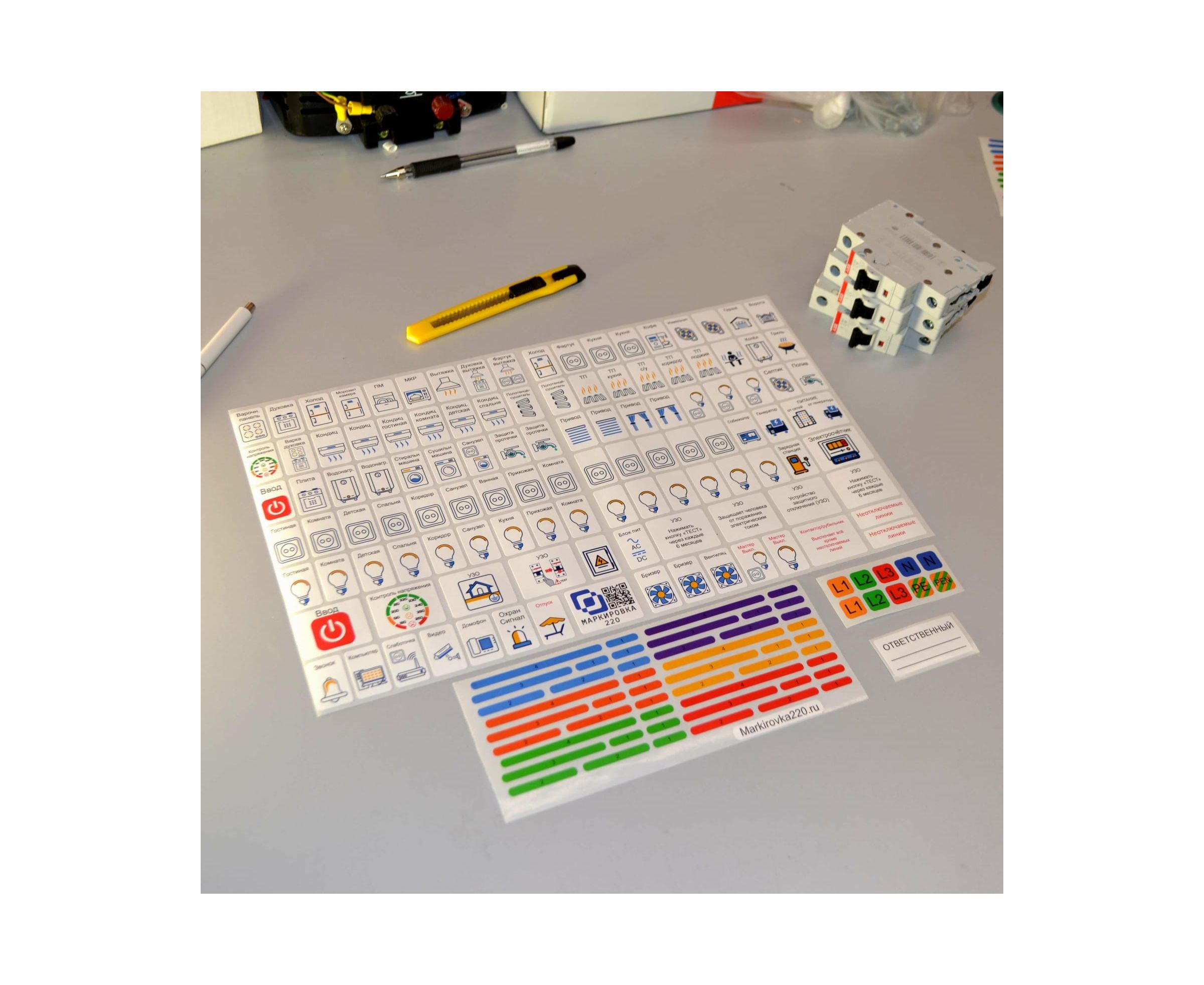 - Наклейки на электрощиток высокого качества, водостойкие, устойчивы к бытовой химии