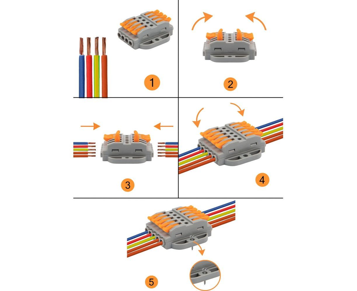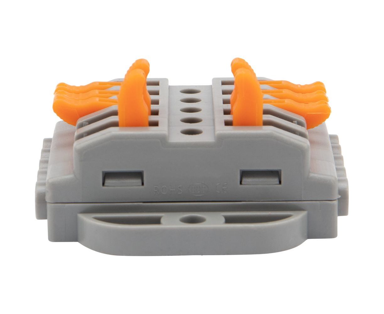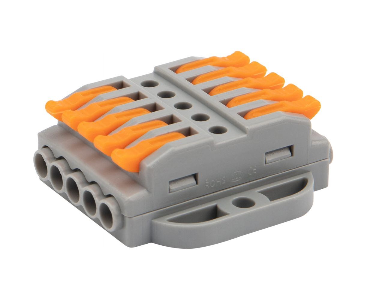 Проходная клемма REXANT с рычажком 5 полюсов 0,08-4 мм2 с монтажной площадкой серая 20 шт 07-6265