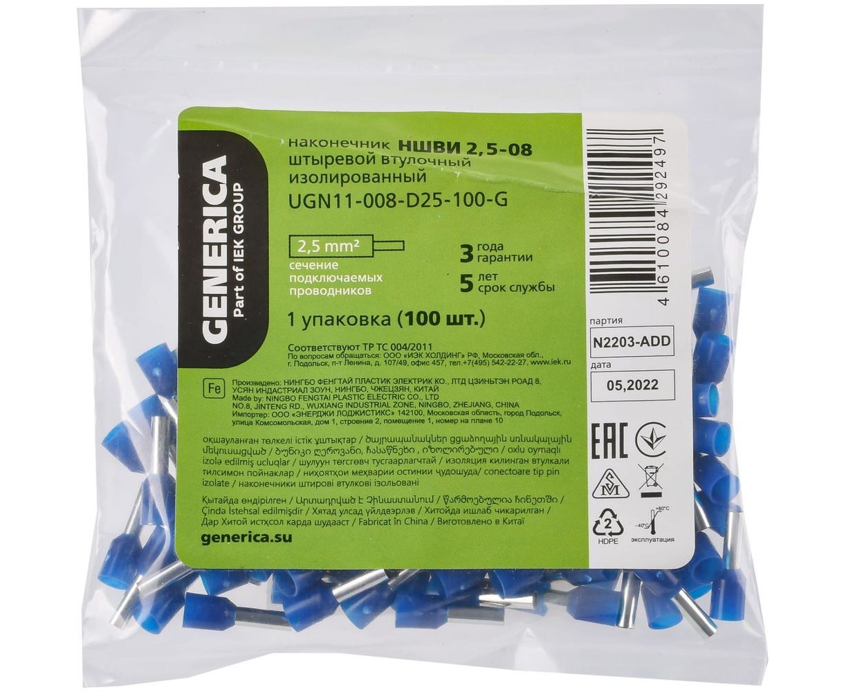 Наконечник ншви GENERICA 2,5-08 2,5мм2 из/фл (100шт/упак) UGN11-008-D25-100-G