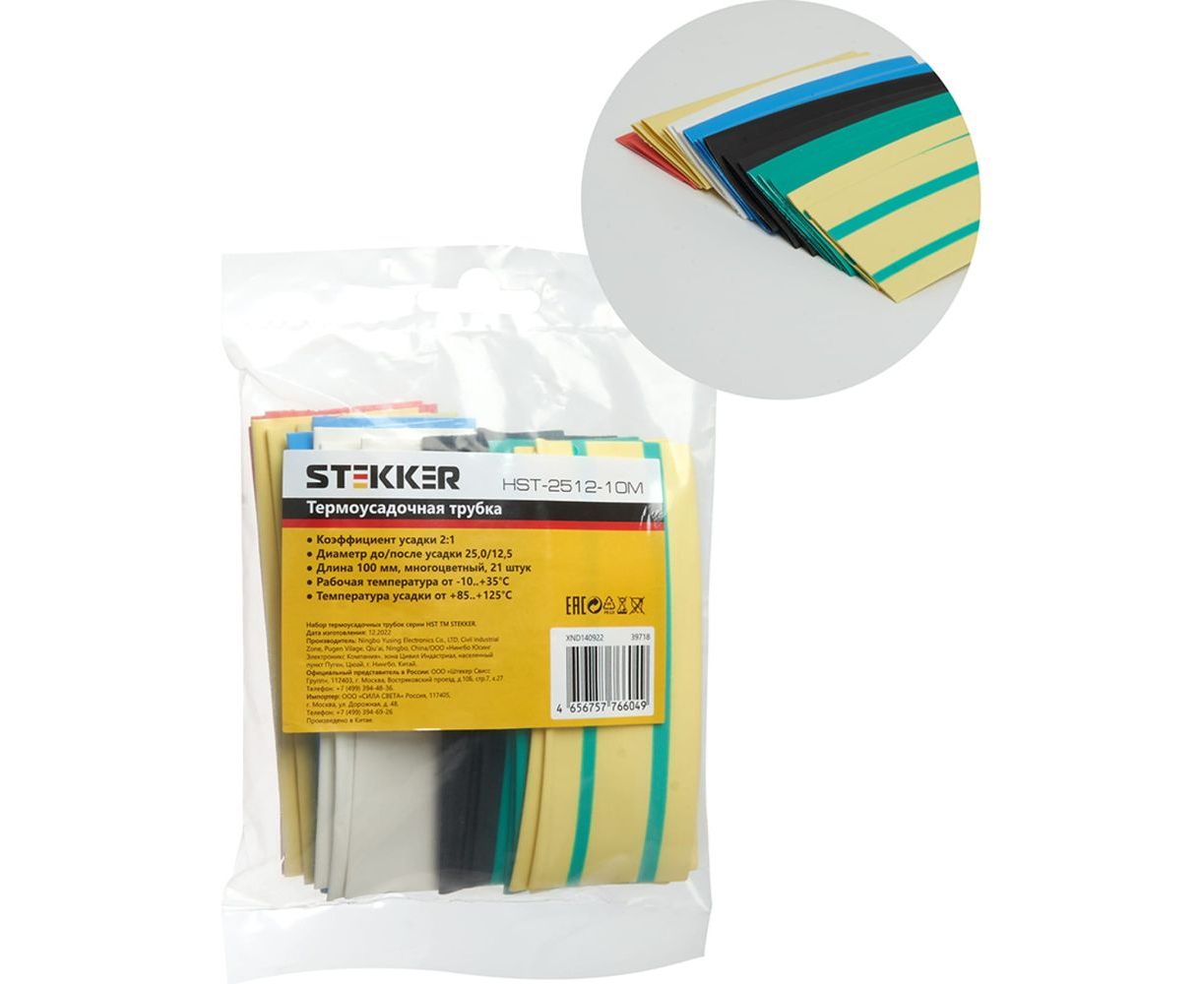 Набор термоусадочных трубок STEKKER hsht-2010-10m, длина 10 см., коэф. усадки 2:1, мультиколор (21шт в упаковке), 39718