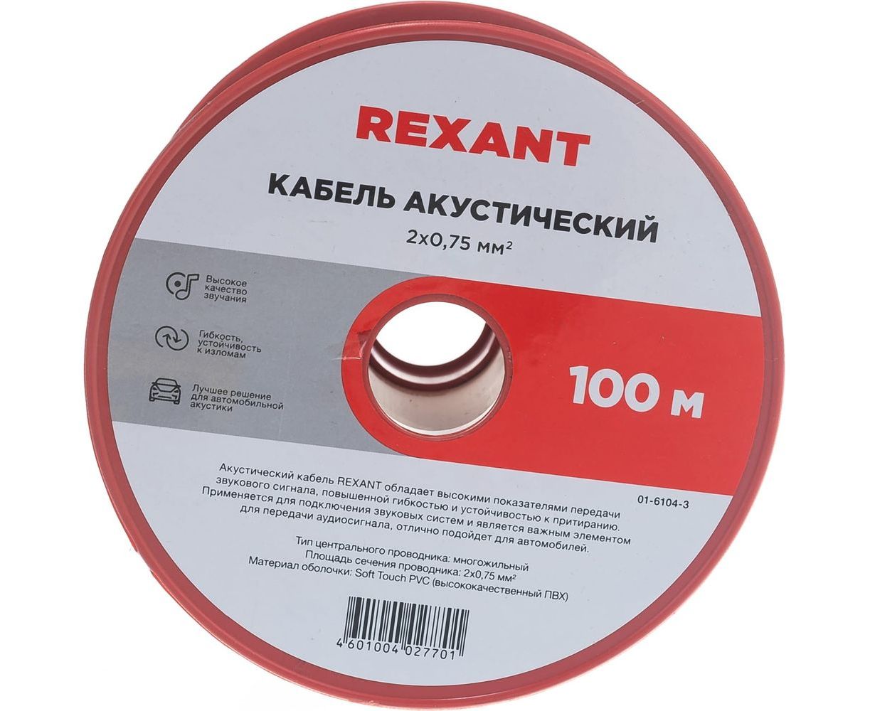 Акустический кабель REXANT ШВПМ 2х0,75 кв.мм, красно-черный, бухта 100 м 01-6104-3 применяется для подключения звуковых систем и является важным элементом для передачи аудиосигнала.