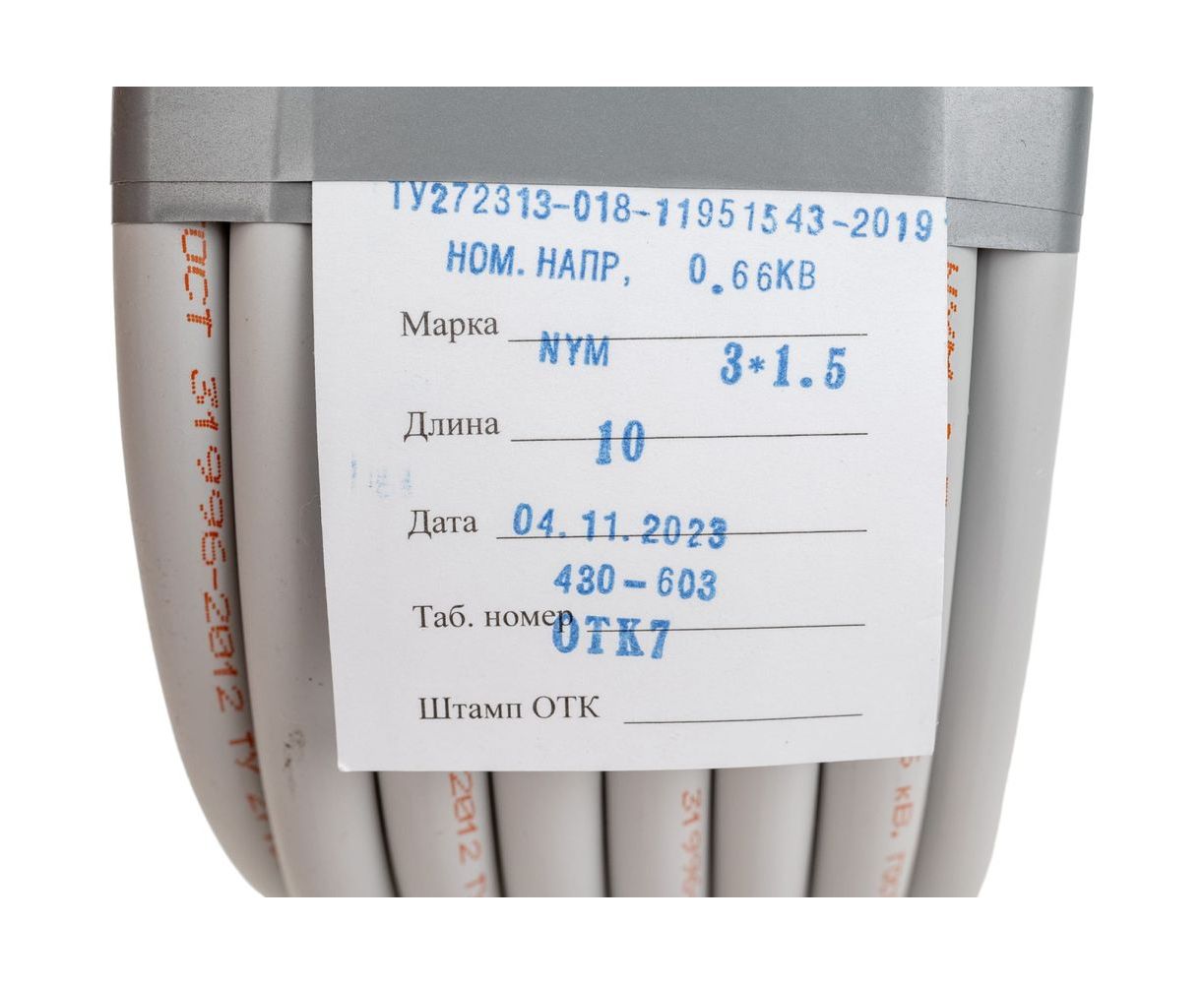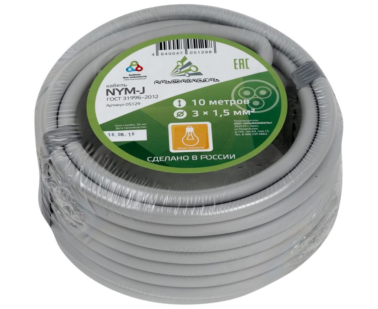 Кабель NYM АЛЬФАКАБЕЛЬ 3х1,5 мм ГОСТ 10 м 05129