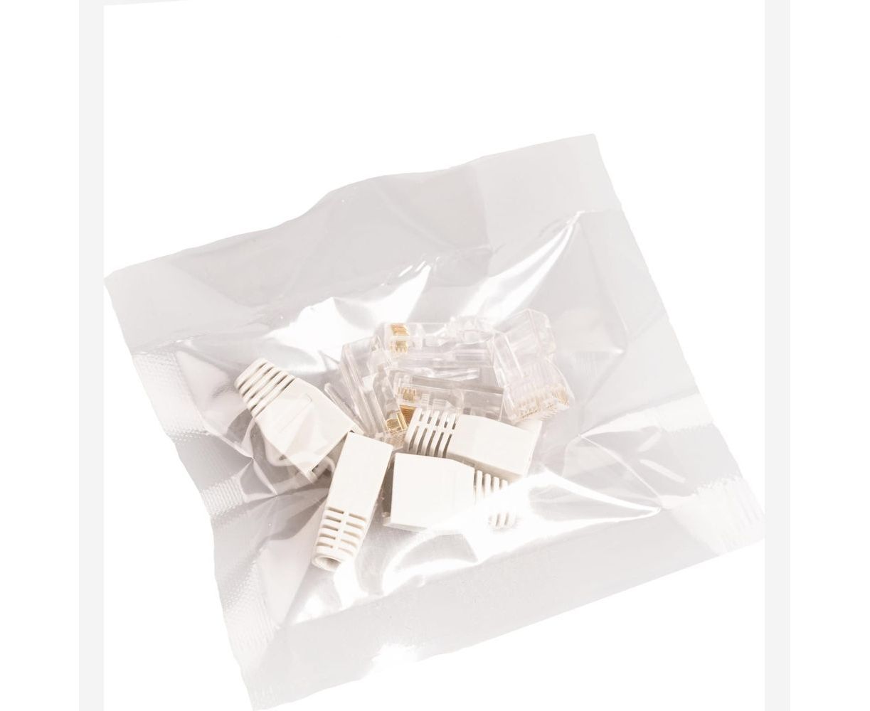 В комплекте с кабелем идет набор коннекторов RJ-45 с колпачками, что позволяет изготовить отрезки витой пары нужной длины в виде патч-кордов.
