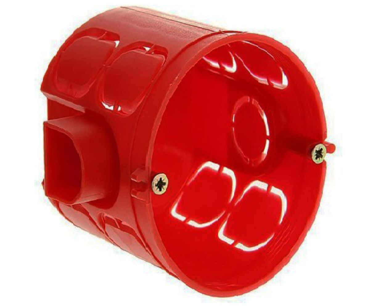 Коробка установочная блочная углубленная с саморезами для скрытой проводки серии ТУСО. Применяется для установки розеток, выключателей и других электроустановочных изделий в кирпичных и бетонных стенах. Цвет коробки - красный.