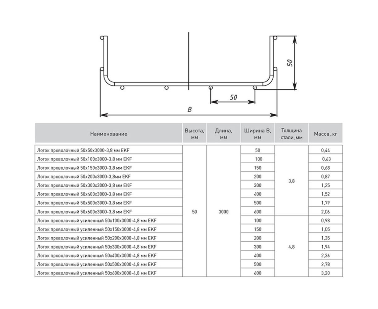 Проволочный лоток EKF 50х50х3000-3,8мм 2 шт по 3 м LP5050-3,8