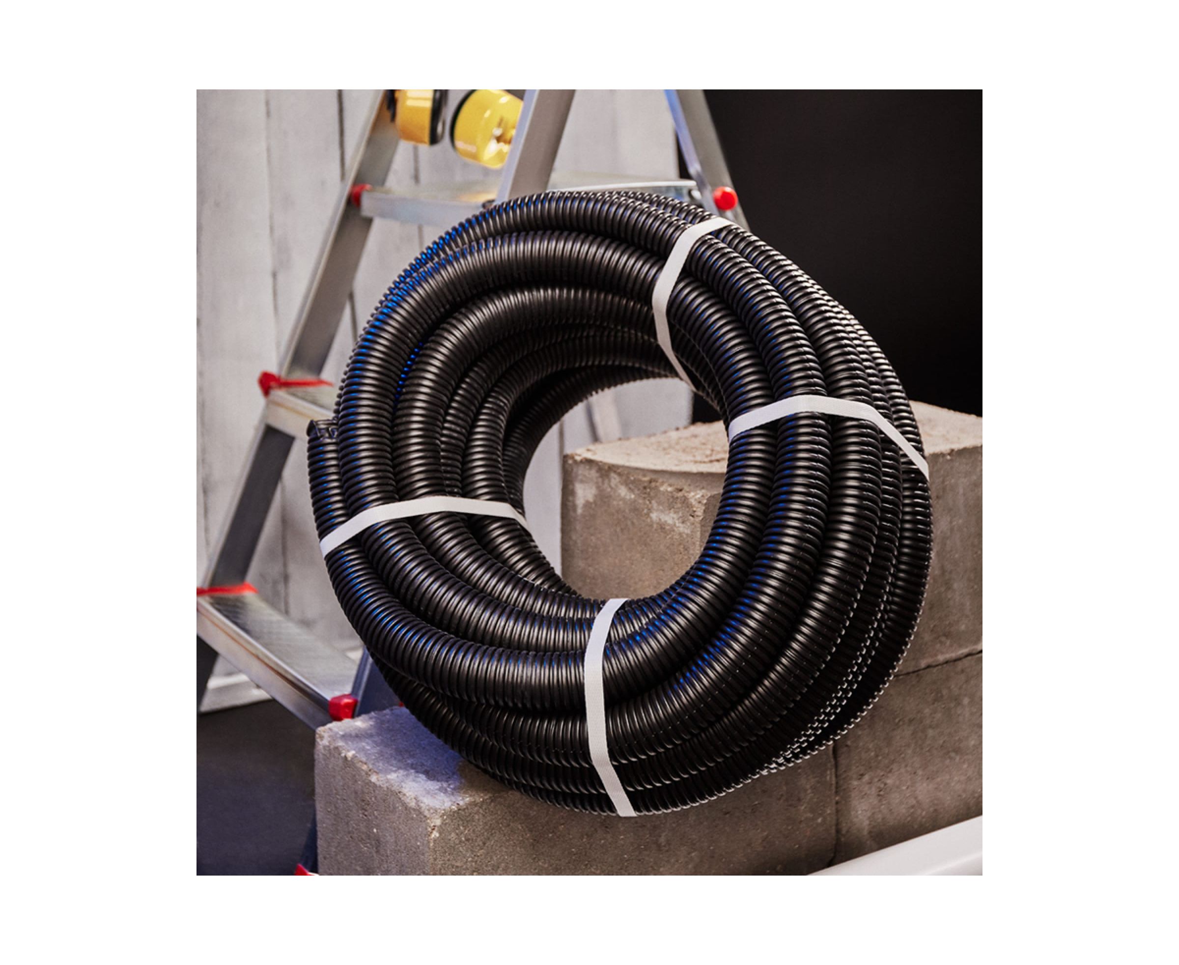 Гофрированная труба REXANT ПНД с зондом 40 мм 15 м 28-0040-3 подходит для защиты изолированных проводов и кабелей от механических повреждений и агрессивного воздействия окружающей среды при прокладке сложных систем и трасс. Применяется для скрытой и открытой прокладки в несущих и ограждающих конструкциях из несгораемых материалов жилых, административных и производственных зданий и сооружений.