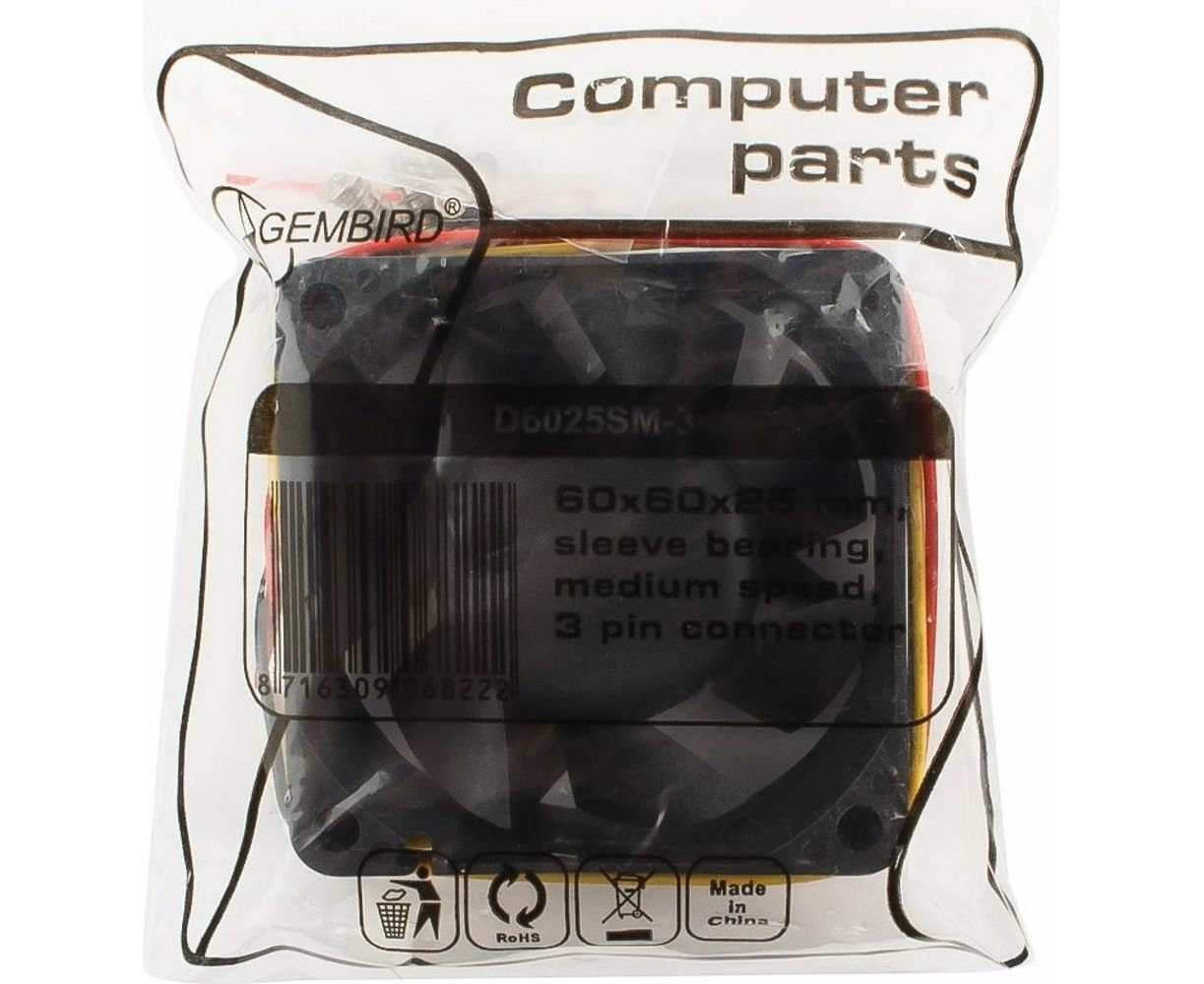 Вентилятор Gembird 60x60x25, втулка, 3 pin, провод 25 см, D6025SM-3