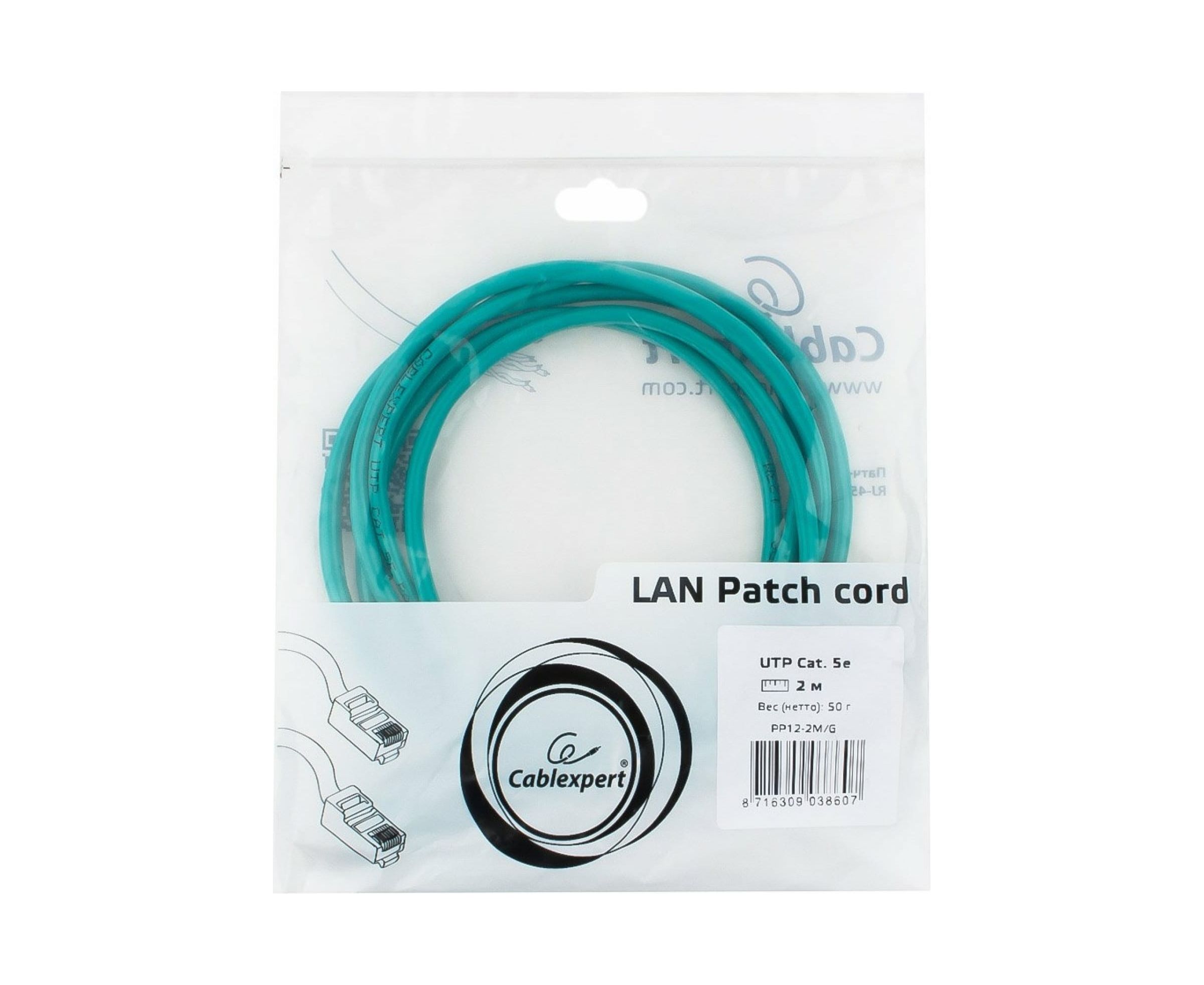 Многожильный патч-корд Cablexpert UTP кат.5e, 2м, литой, зелёный PP12-2M/G