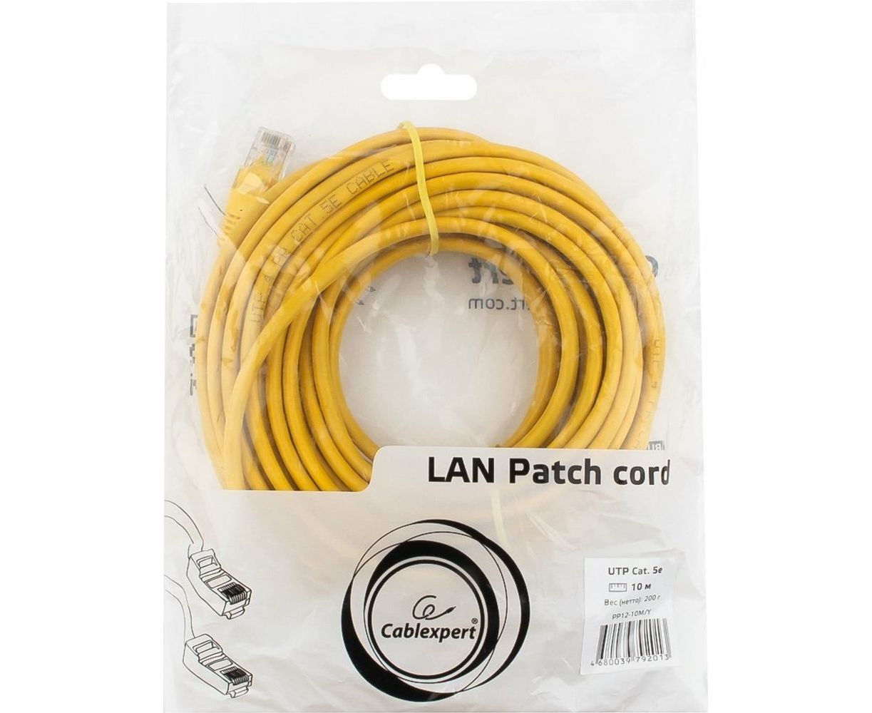 Патч-корд Cablexpert UTP PP12-10M/Y кат.5e, 10м, литой, многожильный жёлтый PP12-10M/Y