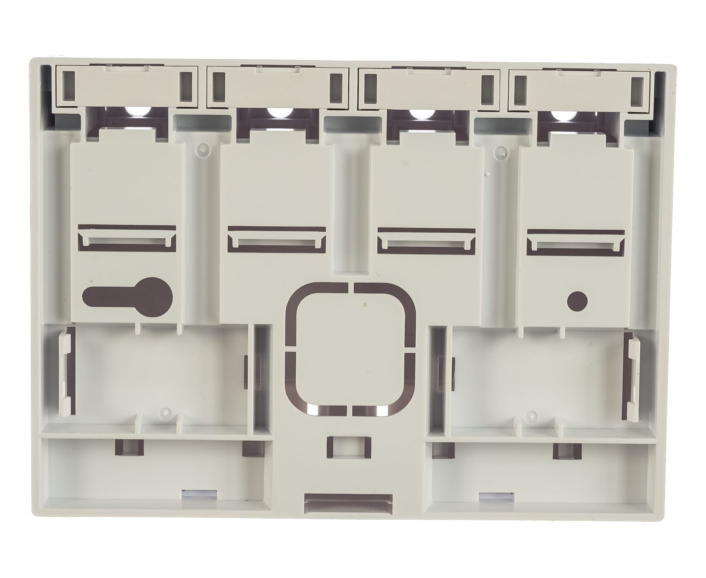 Корпус настенной розетки NIKOMAX 4 порта, белый NMC-MB4P-ST-WT - специализированное пластиковое изделие простой, полой конструкции - простое и удобное решение для монтажа сетей. Предназначается для отдельной установки коммутационных модулей-вставок Keystone. Каждый из четырех портов оборудован индивидуальной шторкой, для защиты контактов от оседания пыли. На корпусе розетки располагаются дополнительные выламывающиеся окошки, для возможности подводки кабеля с любой удобной стороны. Также каждая крышка оснащена площадками для маркировки и для установки цветных иконок.
