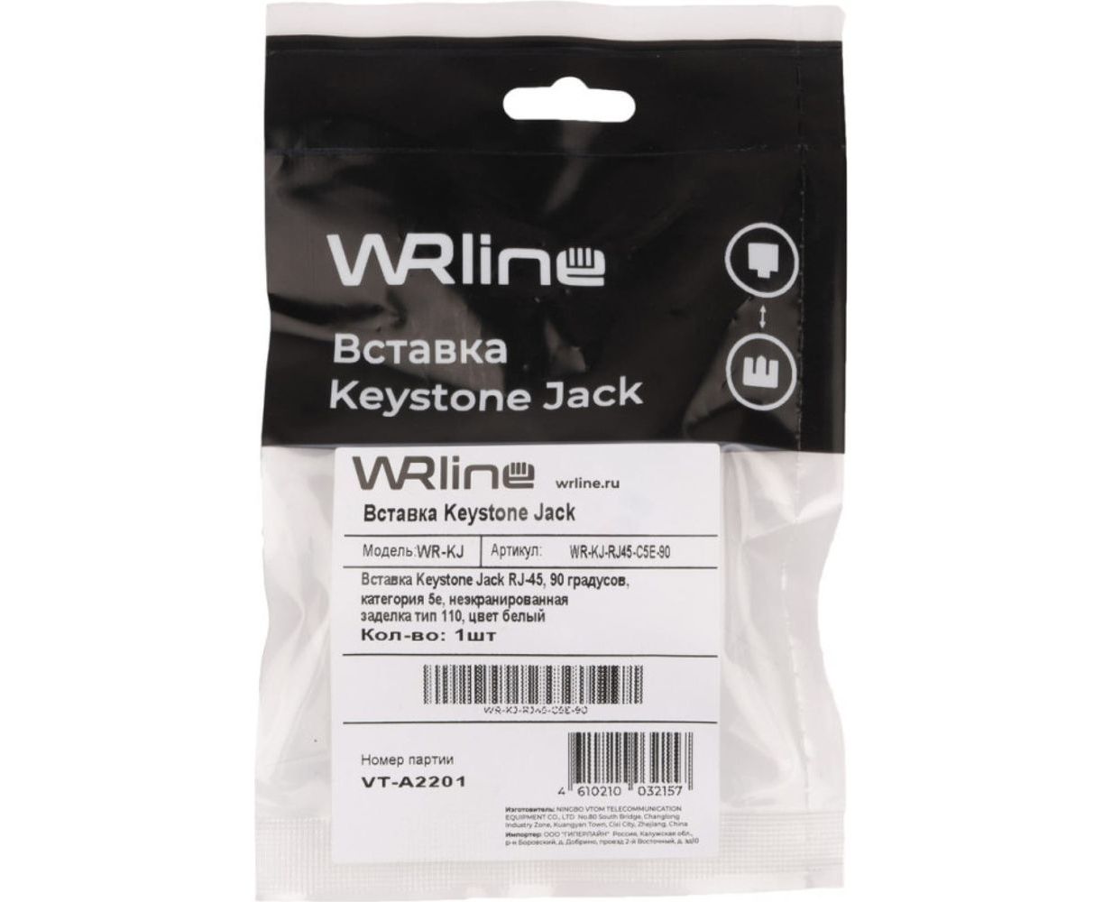 Вставка Keystone WRline WR-KJ-RJ45-C5E-90 Jack RJ-45, 90 градусов, категория 5e, неэкранированная, заделка тип 110, цвет белый 505212