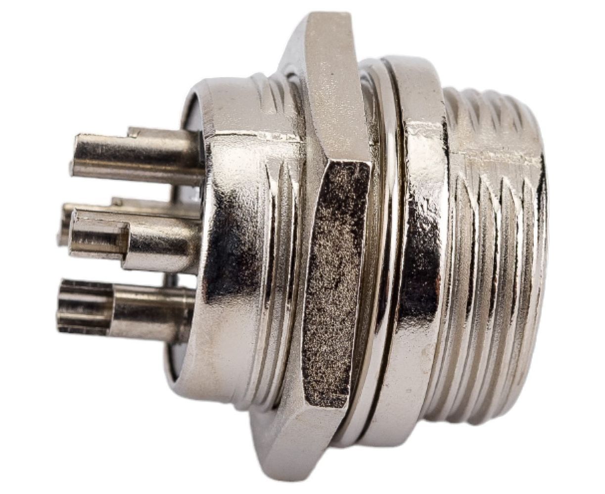 Разъем MIC16 4P штекер Pro Legend металл на корпус, PL2208 малогабаритный - коннектор ручного соединения цилиндрический, внутреннего объемного монтажа, соединяет цепи с нагрузкой до 15 А и 200 В.