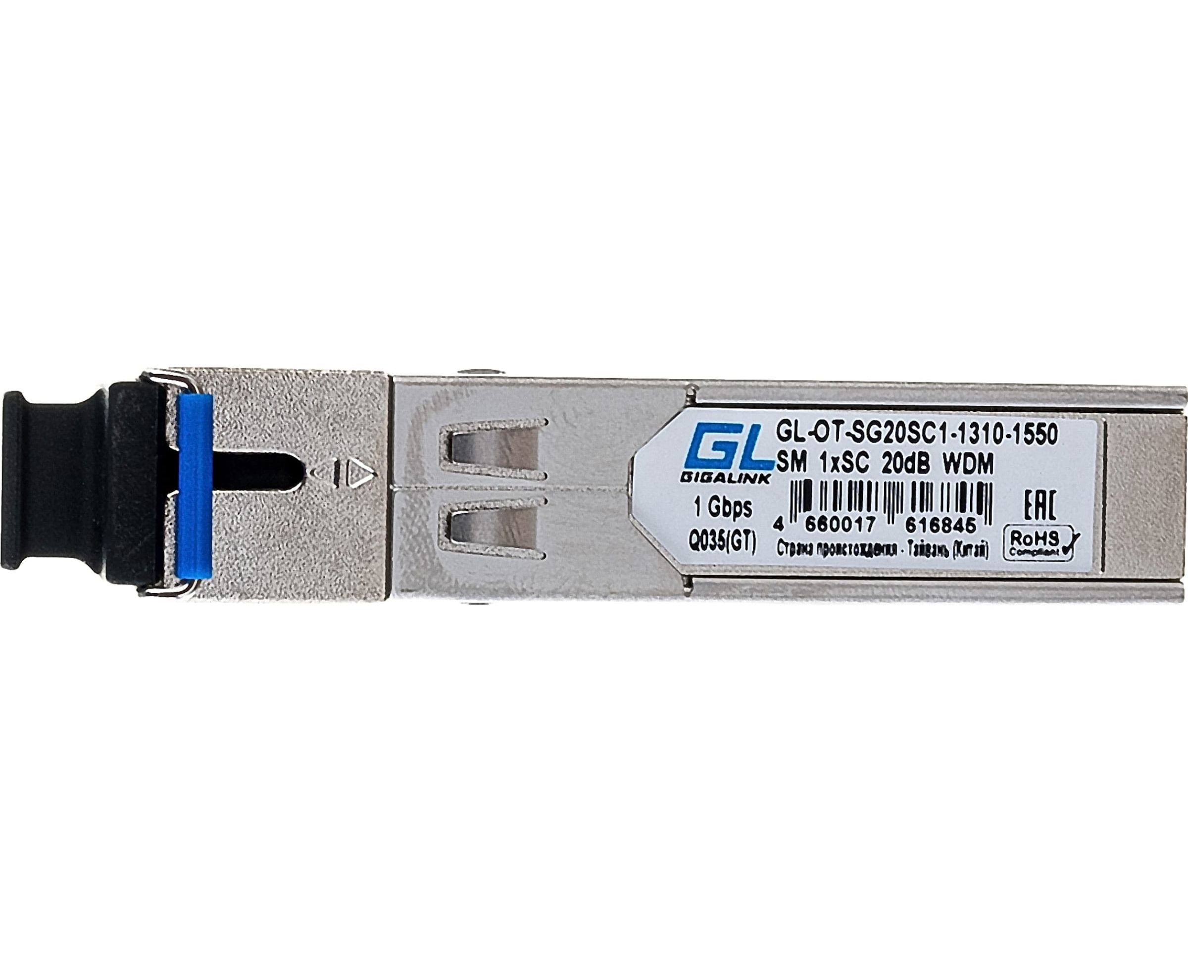 Модуль SFP GIGALINK WDM, 1Гбит/c, одно волокно SM, SC GL-OT-SG20SC1-1310-1550
