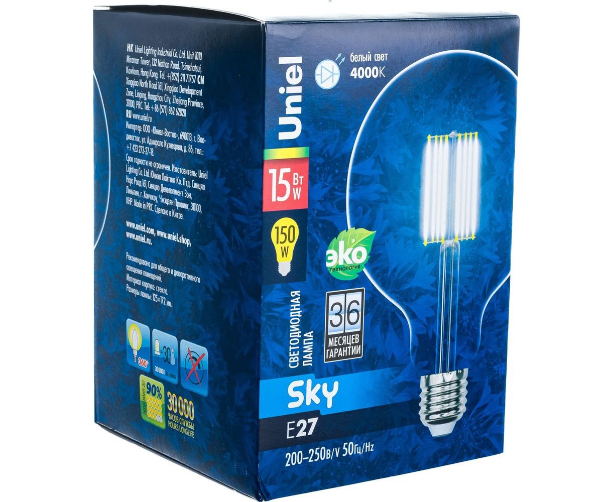 Лампа Uniel LED-G125-15W/4000K/E27/CL PLS02WH Форма шар, прозрачная UL-00004861