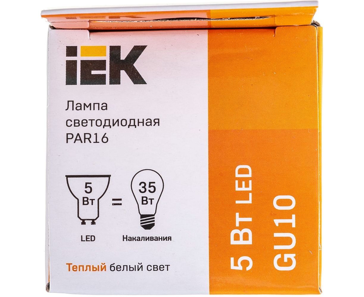 Лампа IEK LED, PAR16, софитная, 5вт, 230В, 3000К, GU10 LLE-PAR16-5-230-30-GU10