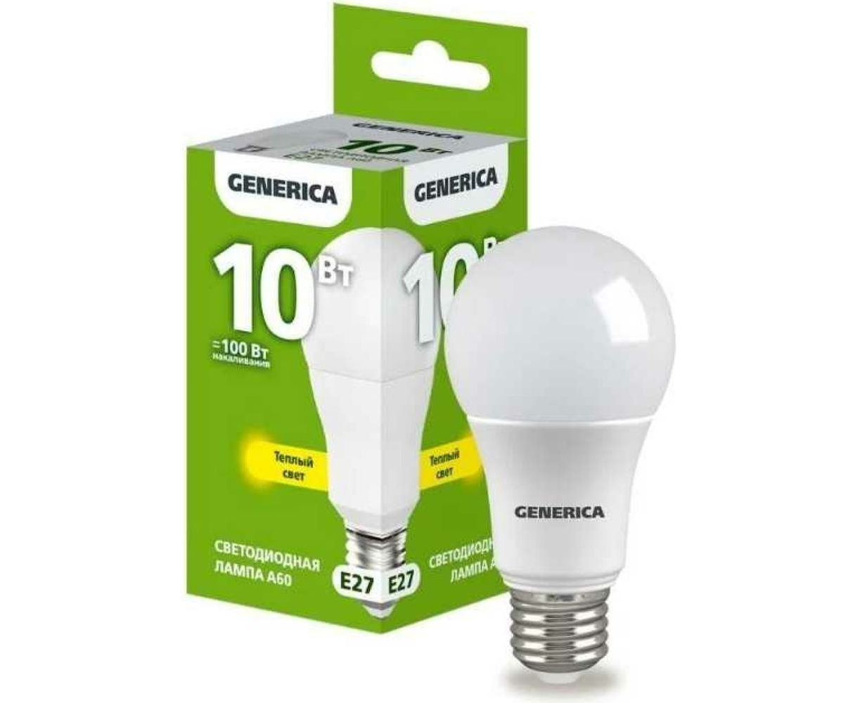 Светодиодная лампа GENERICA A60 груша 10Вт 230В 3000К E27 LL-A60-10-230-30-E27-G