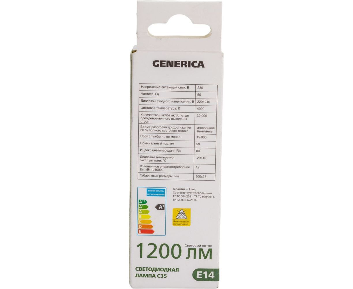 Светодиодная лампа GENERICA C35 свеча 12Вт 230В 4000К E14 LL-C35-12-230-40-E14-G