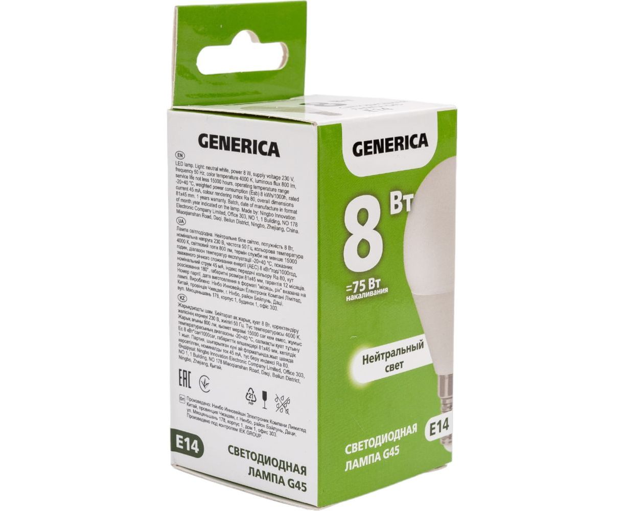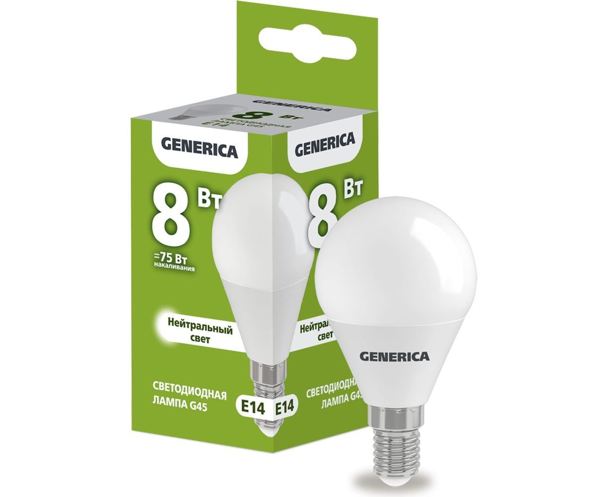 Светодиодная лампа GENERICA G45 шар 8Вт 230В 4000К E14 LL-G45-08-230-40-E14-G