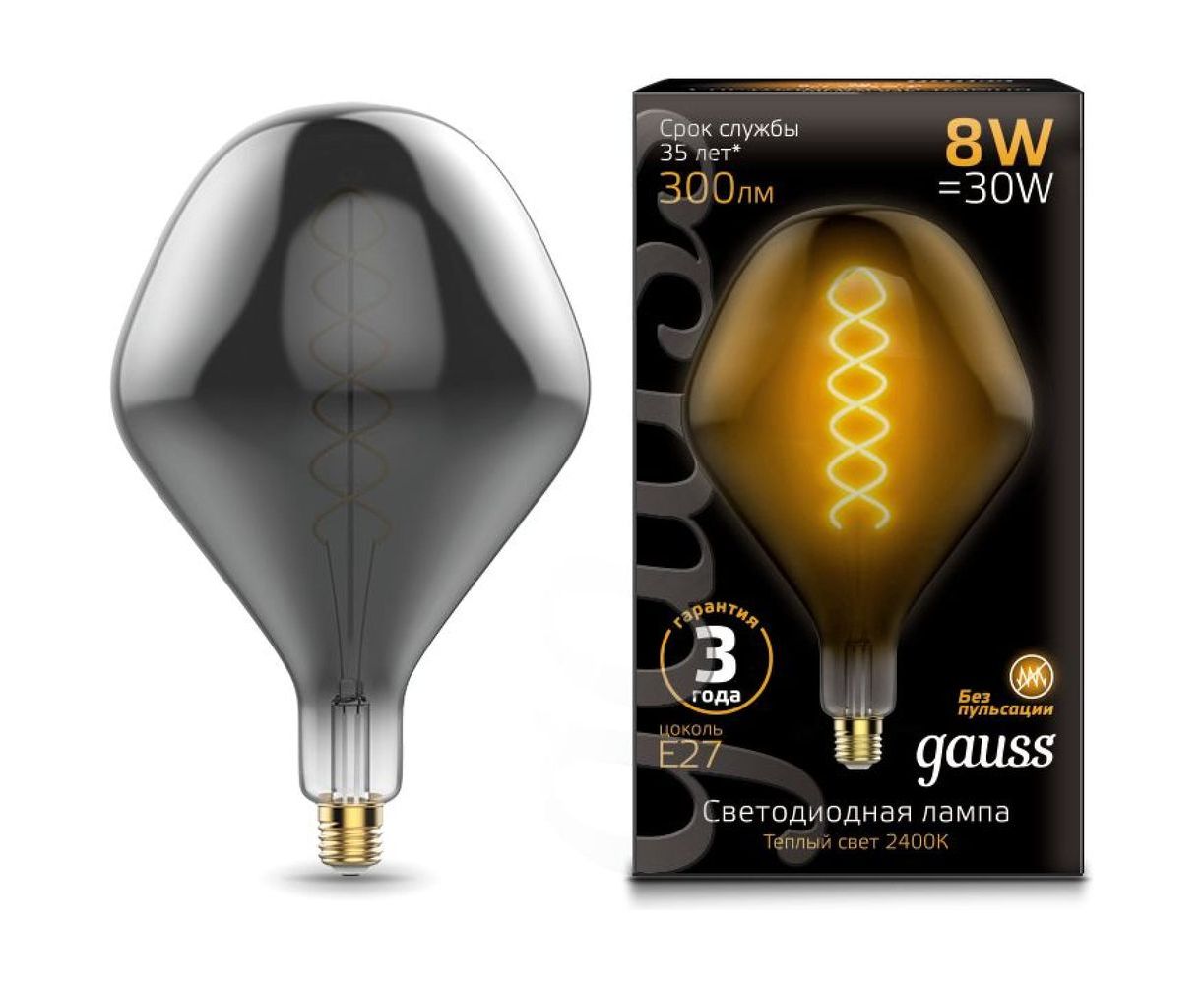 Лампа Gauss LED Vintage Filament Flexible SD160 8W E27 160x270mm Gray 2400K 1/6 163802008