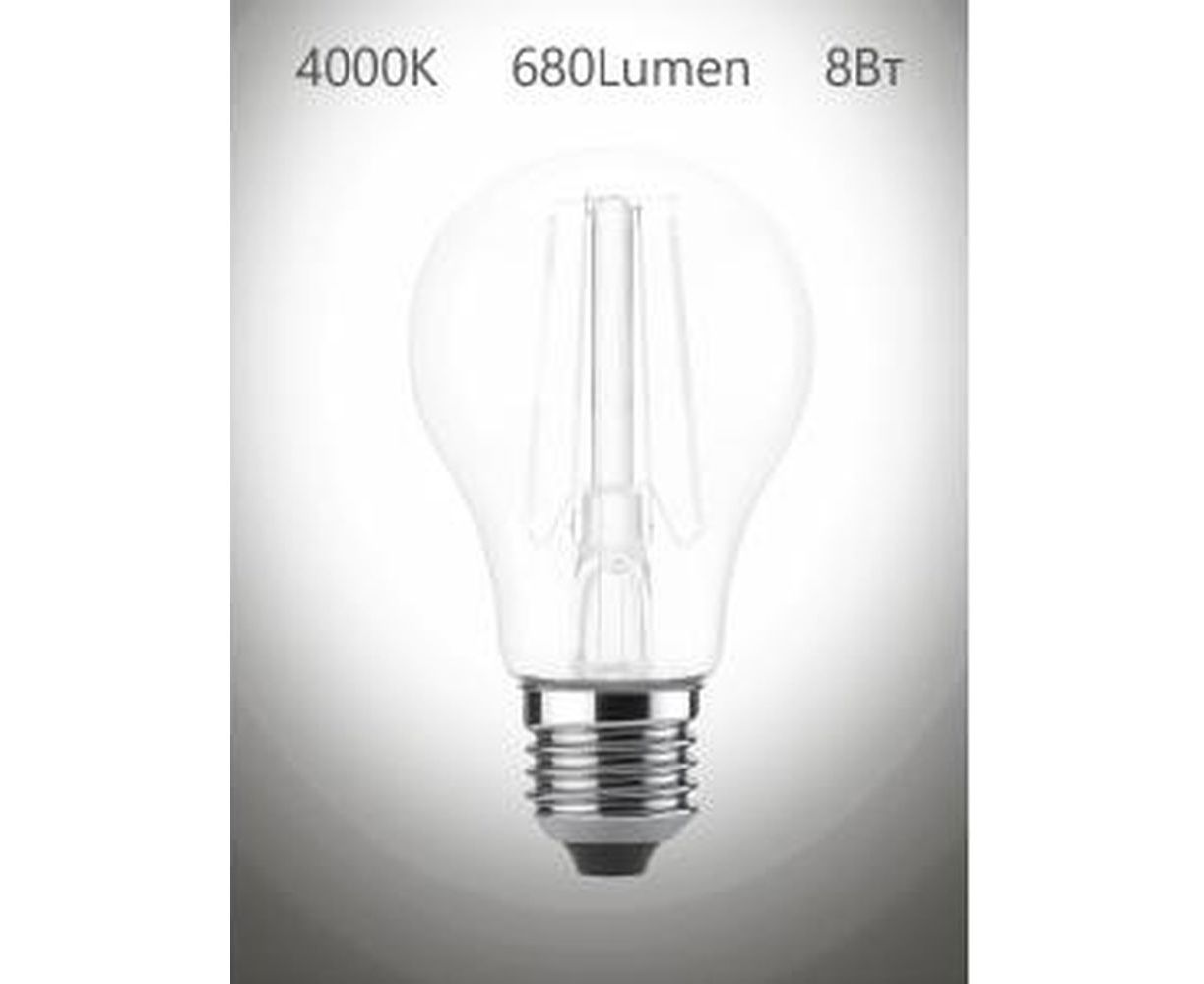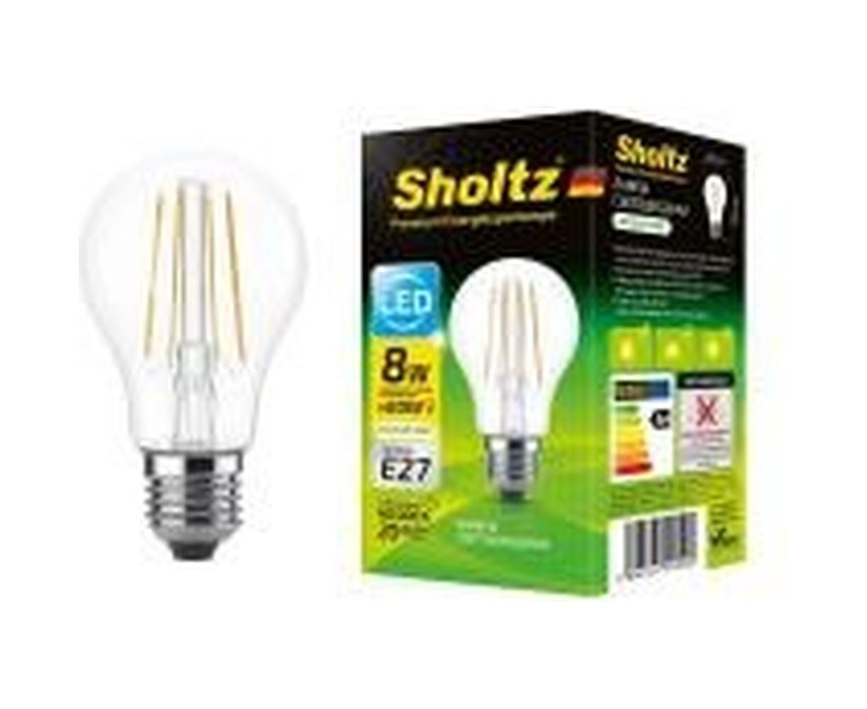 Светодиодная филаментная лампа Sholtz груша 8Вт E27 4000К A60 220-240В стекло FOB5105