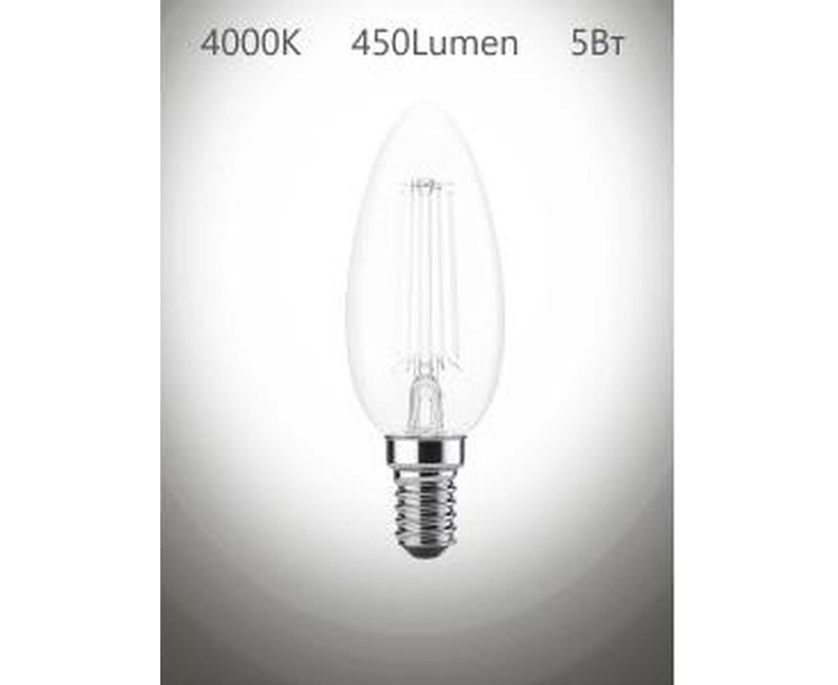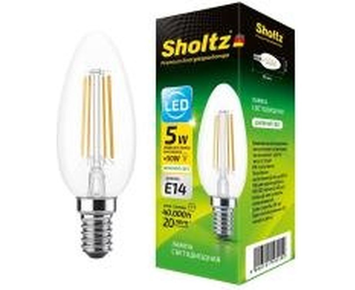Светодиодная филаментная лампа Sholtz свеча 5Вт E14 4000К C37 220-240В стекло FOC5001