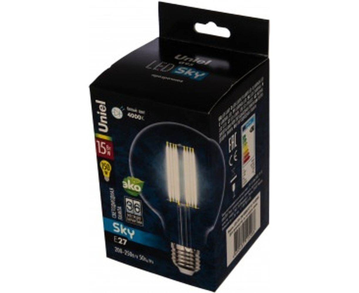 Светодиодная лампа Uniel LED-G95-15W/4000K/E27/CL PLS02WH. Форма шар, прозрачная. UL-00004865