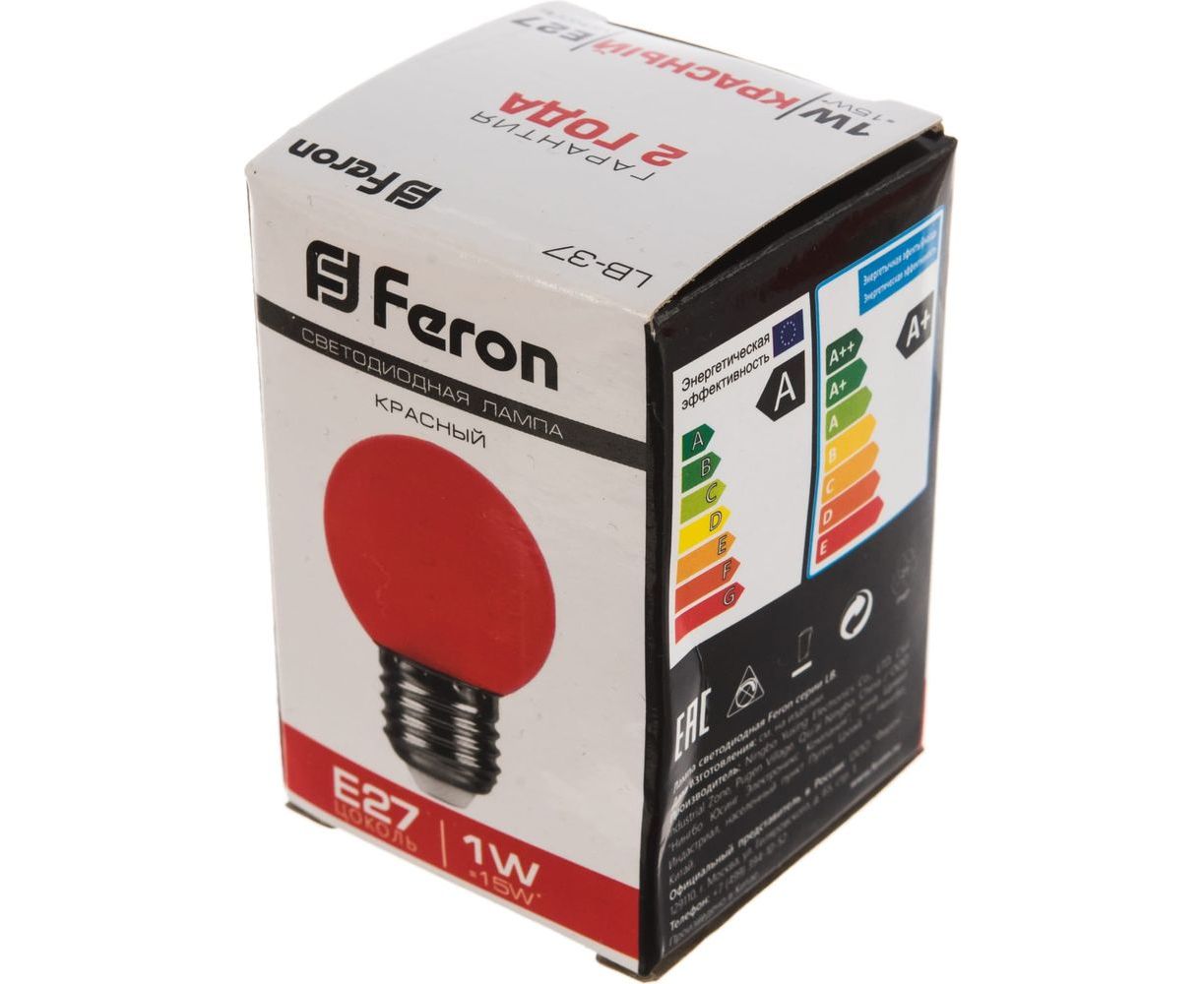 Лампа FERON LED 1вт Е27, красный, шар 25116