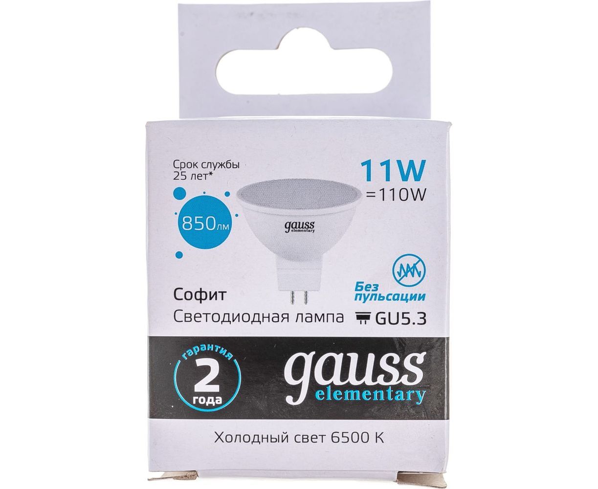 Лампа Gauss Elementary MR16 11W 850lm 6500K GU5.3 LED 1/10/100 13531