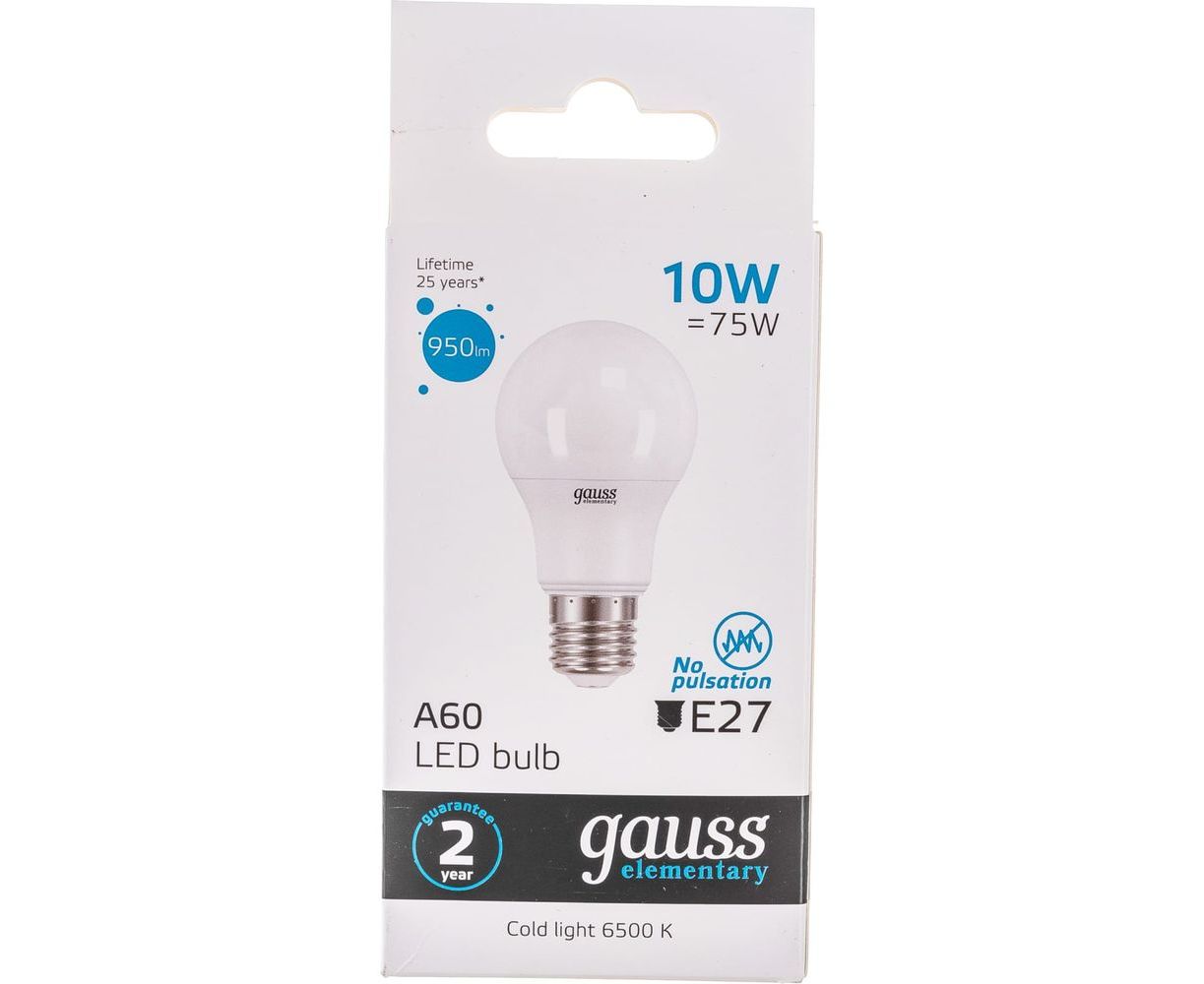 Лампа Gauss LED Elementary A60 10W E27 950lm 6500K 23230